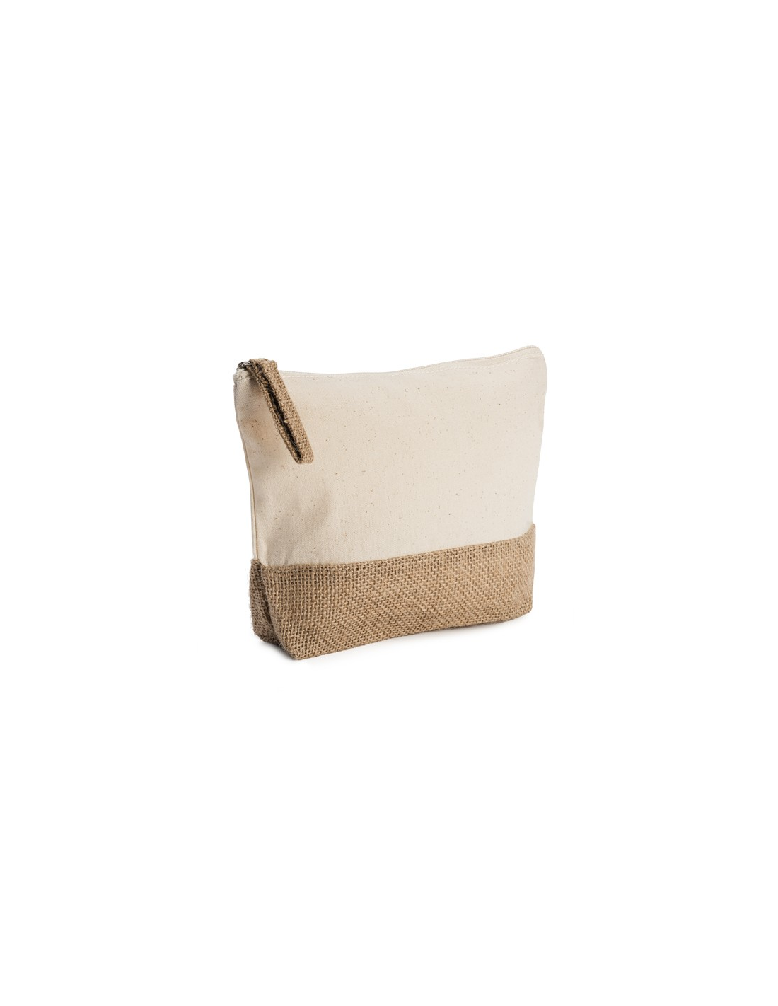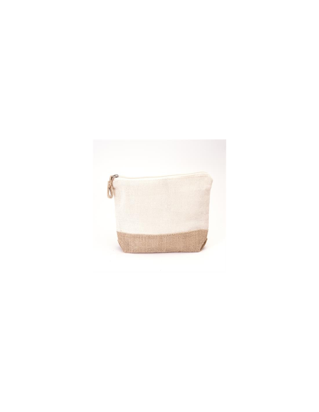 Bawełniana torba na przybory toaletowe eco line 180 g/m² i juta. Kolor naturalny. Spód i uchwyt z juty. Zamek błyskawiczny z dopasowanym jutowym ściągaczem.