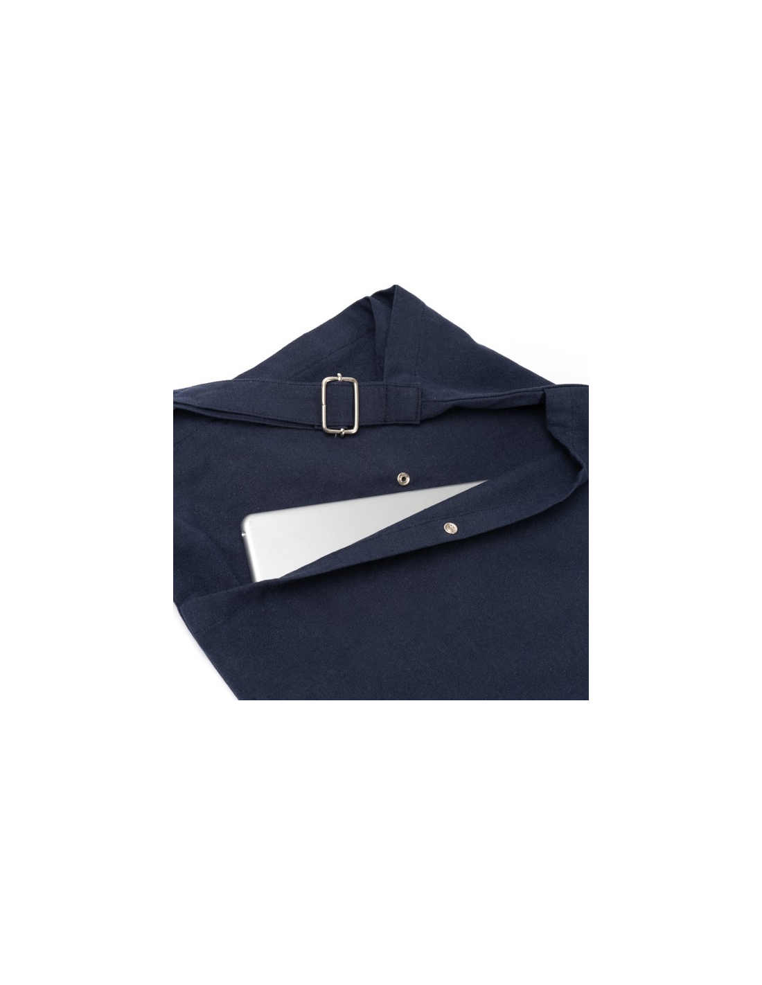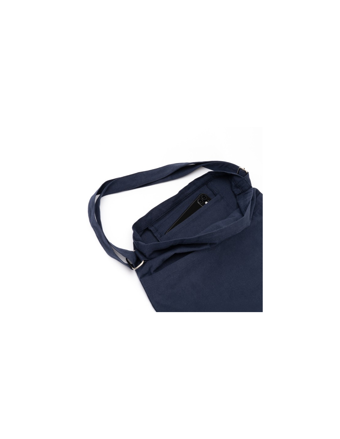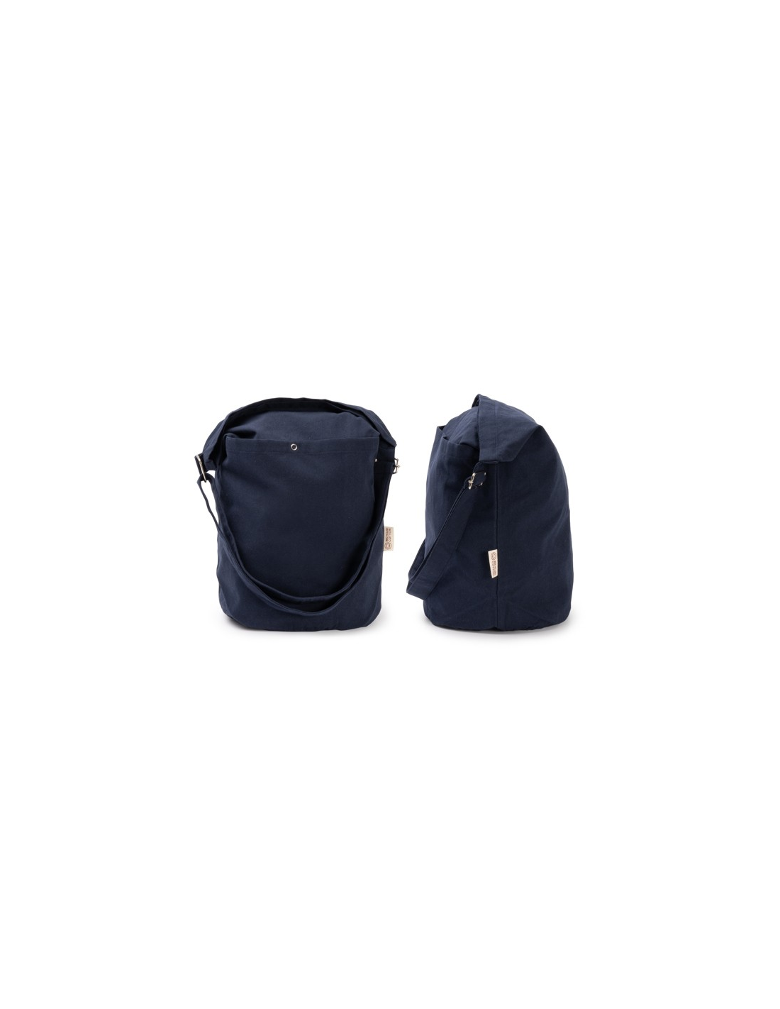 Torba wykonana z bawełny pochodzącej z recyklingu o gramaturze 240 g/m² z przednią kieszenią, zapięciem na guziki i wewnętrzną kieszenią. Regulowany uchwyt.