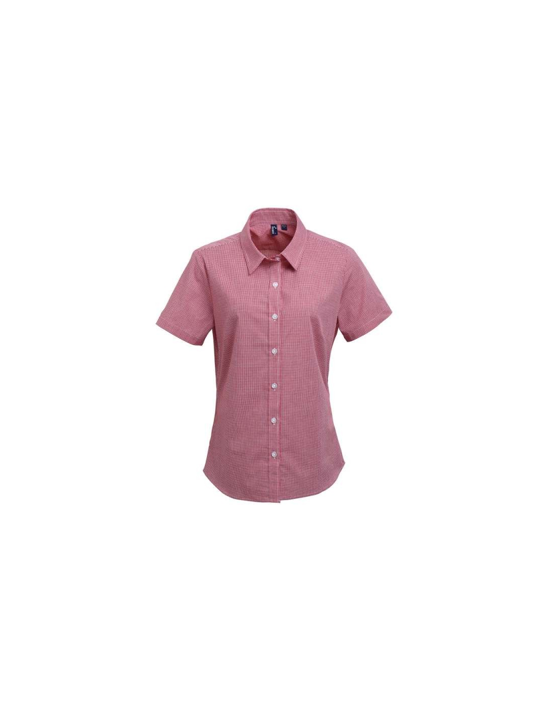 WOMEN'S SHORT SLEEVE GINGHAM MICROCHECK SHIRT