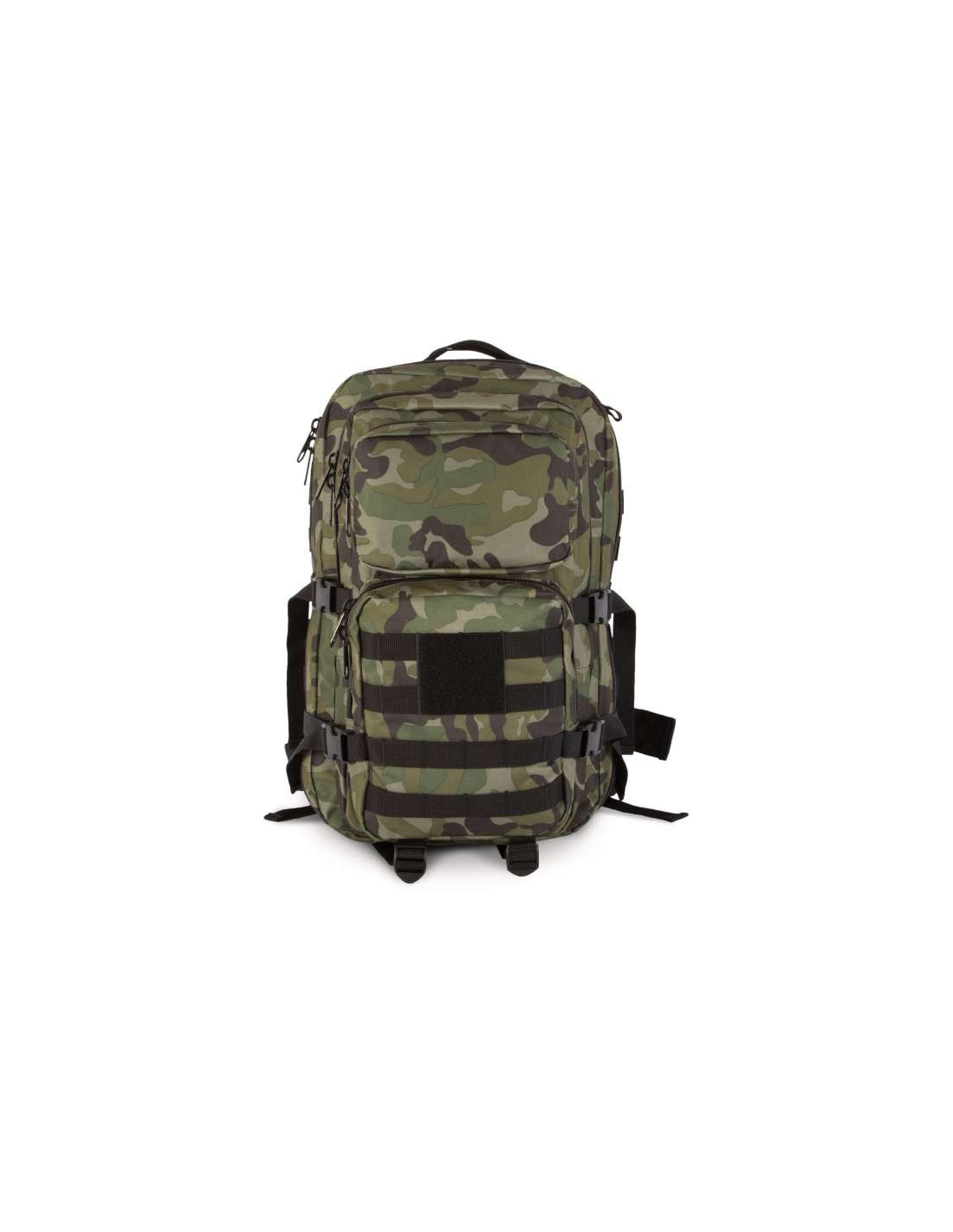 - Ideal for outdoor activities, the backpack has water bladder pockets, hydration tube ports, a large admin front compartment, loop patches, MOLLE webbing, compression straps, ergonomically designed and adjustable padded shoulder straps