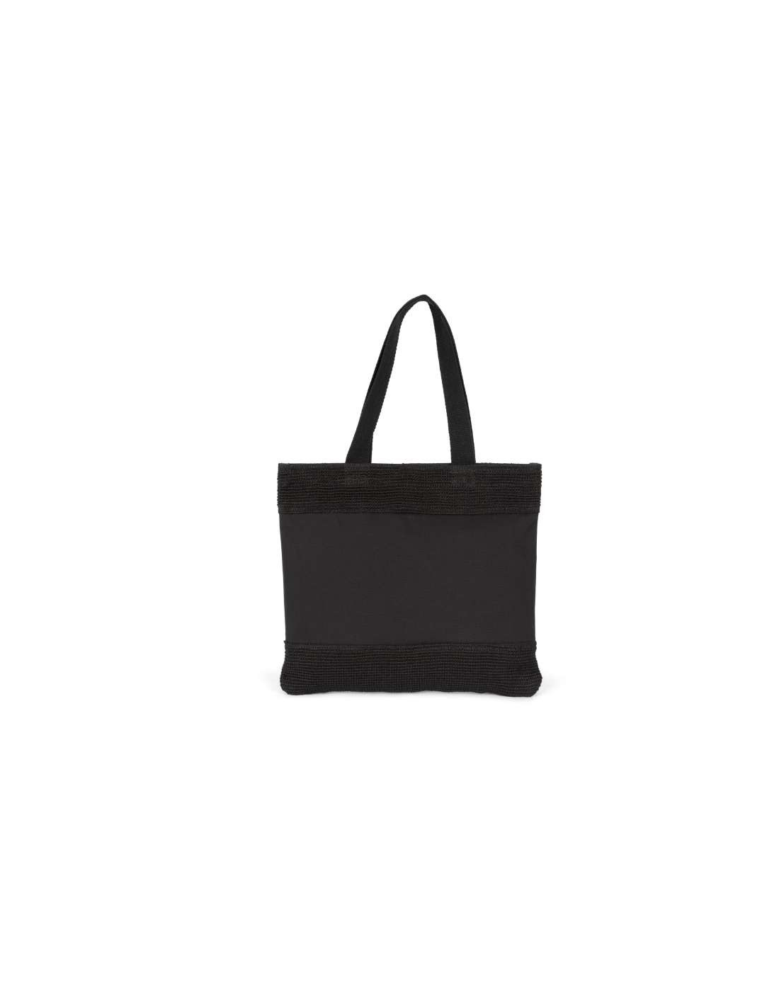• Shopping bag featuring upper and lower panels crafted from woven jute threads with a knit effect and a central cotton panel for easy decoration access