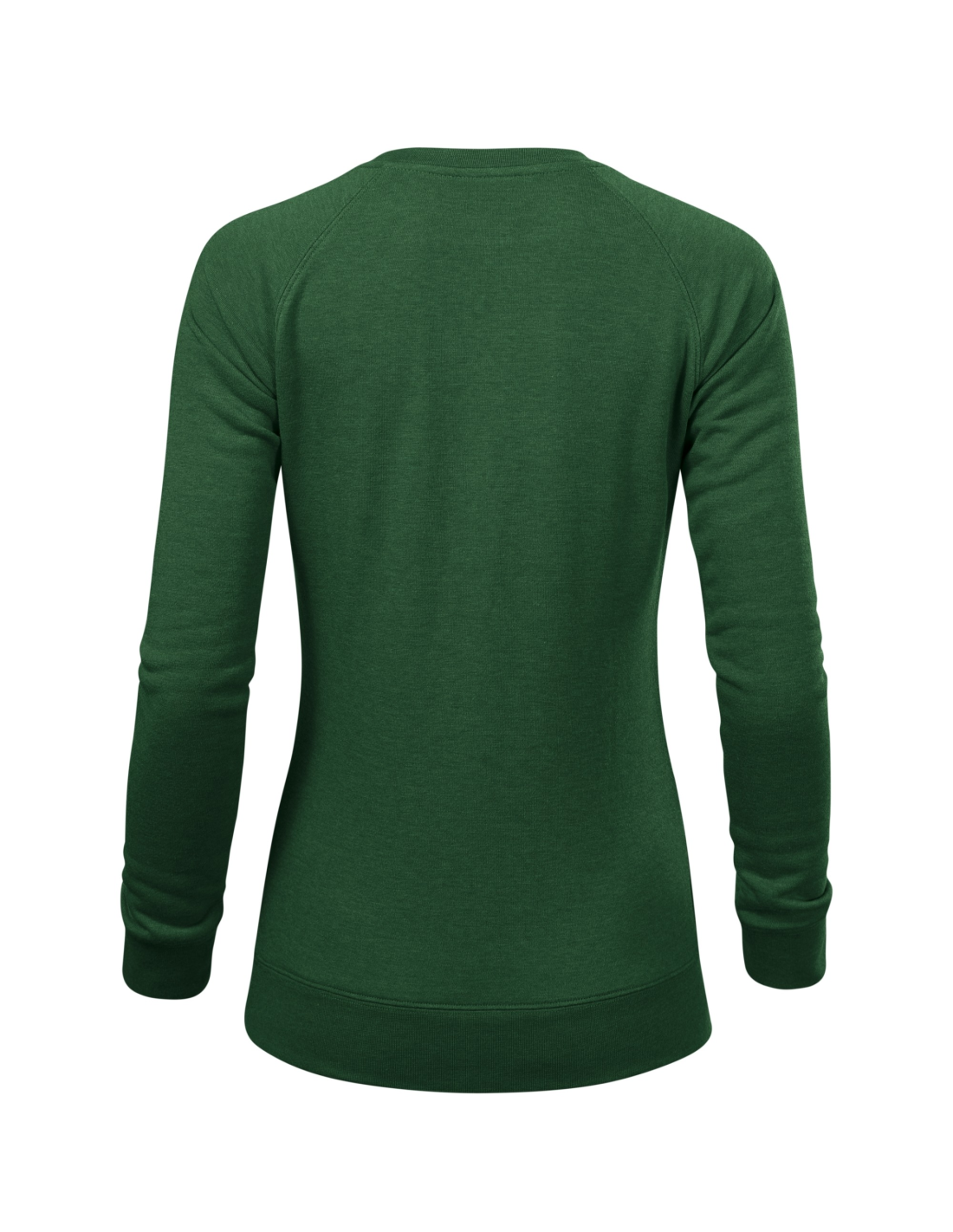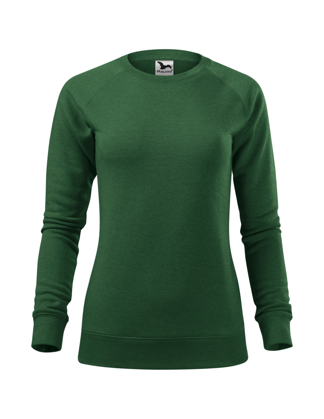 dopasowany krój ze szwami bocznymi, wewnętrzna tylna część lamówki wzmocniona kolorową taśmą z materiału wierzchniego, raglanowe rękawy z podwójnym przeszyciem, dolny ściągacz, mankiety i lamówka z dzianiny ściągaczowej 1:1 z dodatkiem 5 % elastanu, nieczesana strona wewnętrzna
