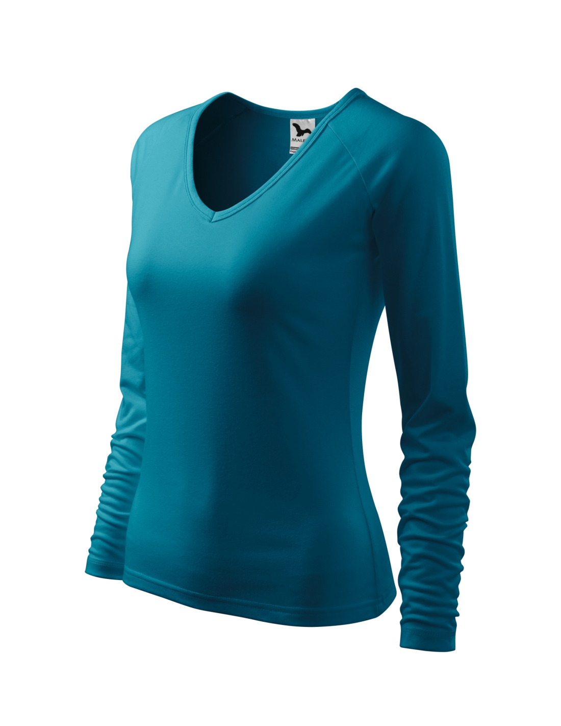 elastyczny materiał utrzymujący kształt, krój slim-fit ze szwami bocznymi, dekolt w kształcie litery V, dekolt wykończony materiałem wierzchnim, długie raglowane rękawy, wycofywany kolor 39, 96 znajdziecie Państwo pod nr artykułu 17X w dziele wyprzedaży