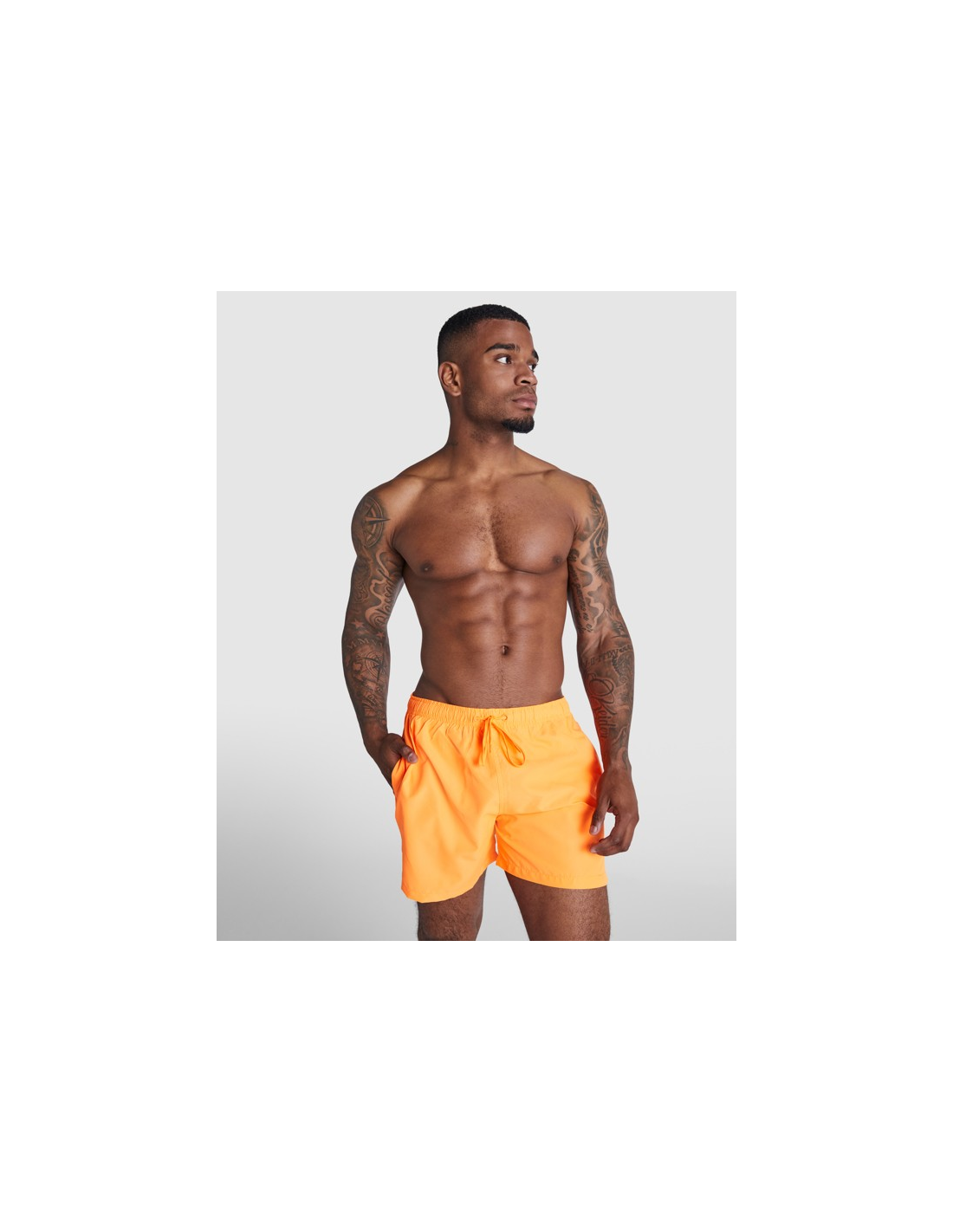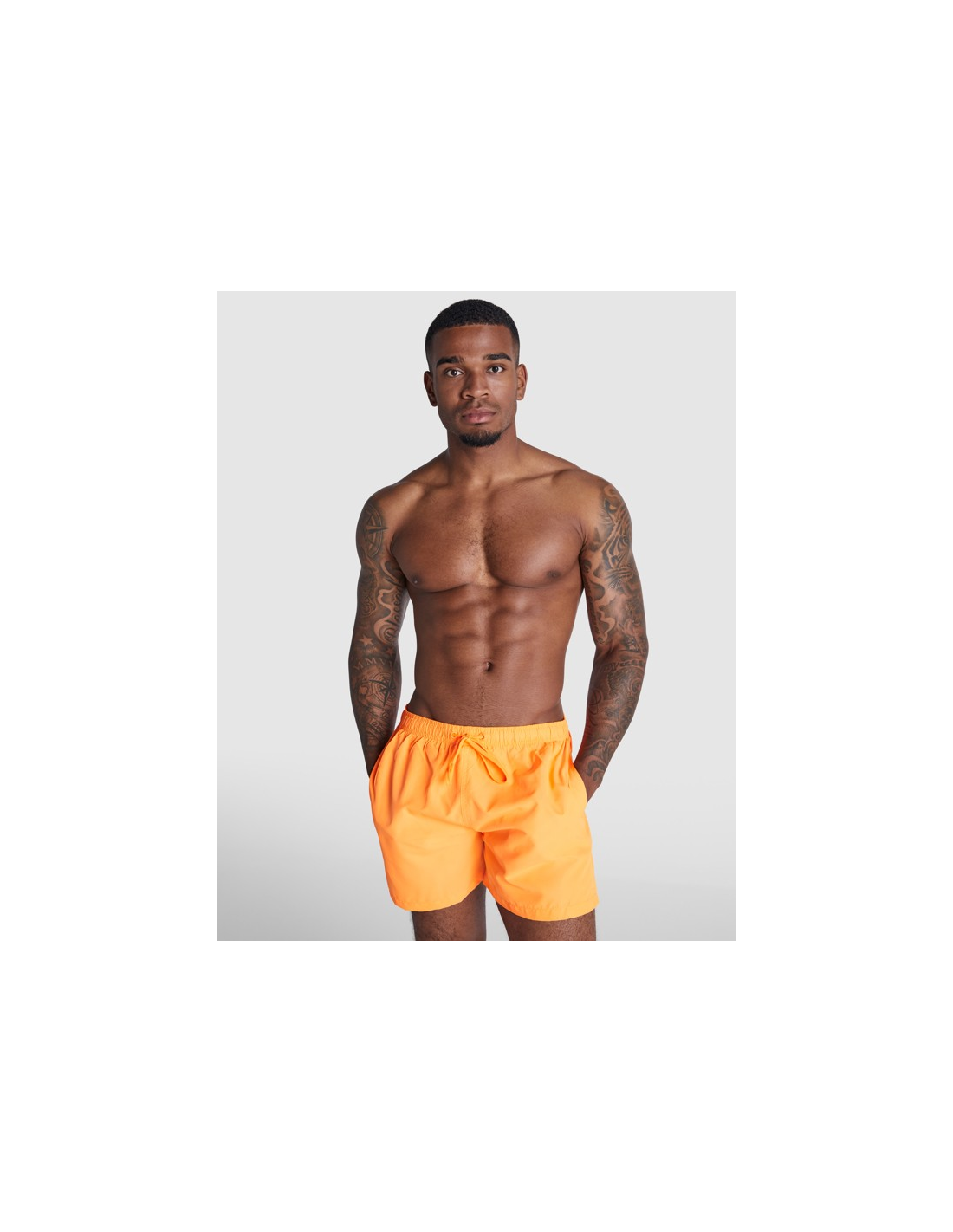 Kąpielówki. Dwie kieszenie boczne. Regulowany ściągacz w dopasowanym kolorze, tylna kieszeń z napą. Rozcięcia po bokach nogawek. Podwójne szwy w kolorze dopasowanym do tkaniny.