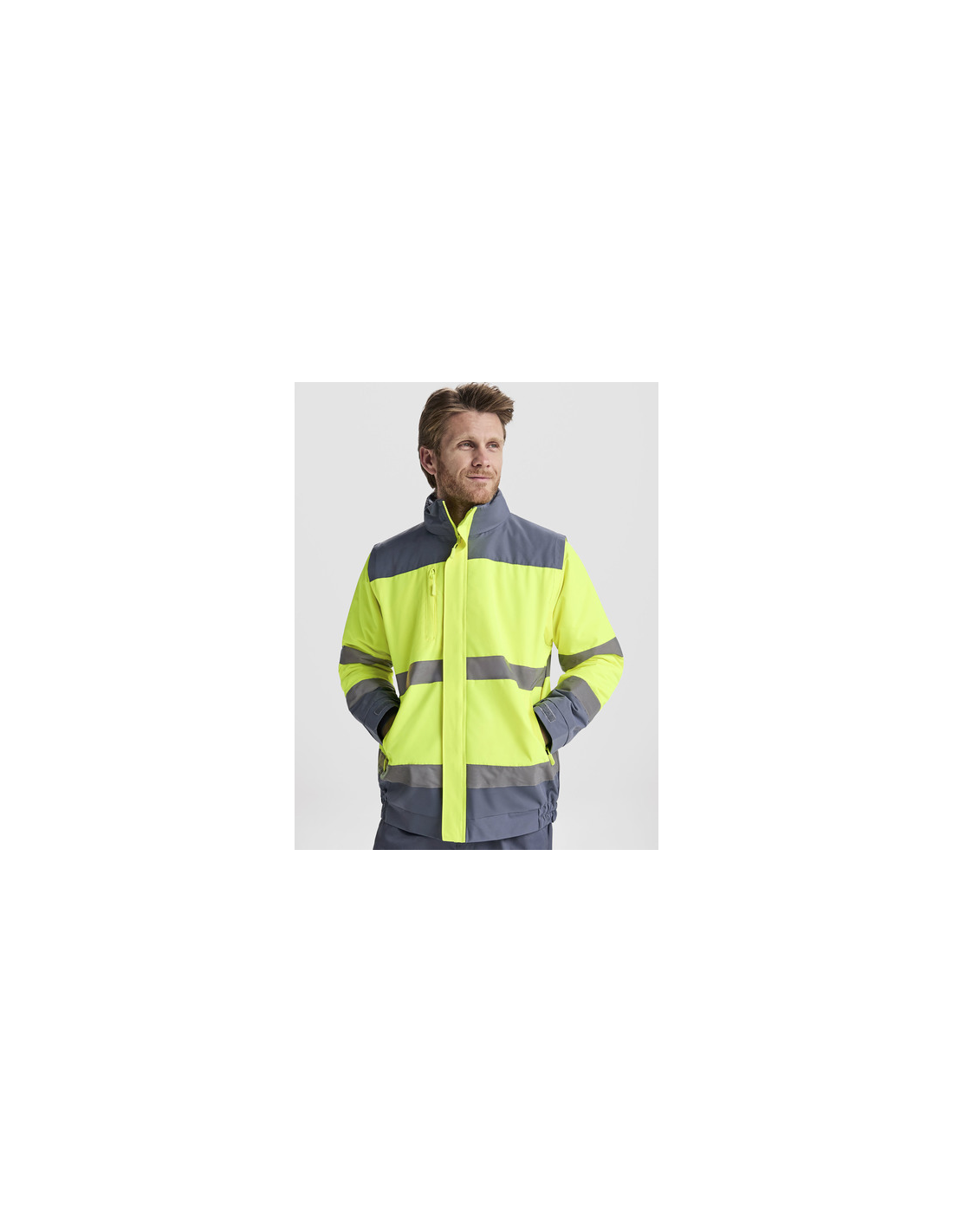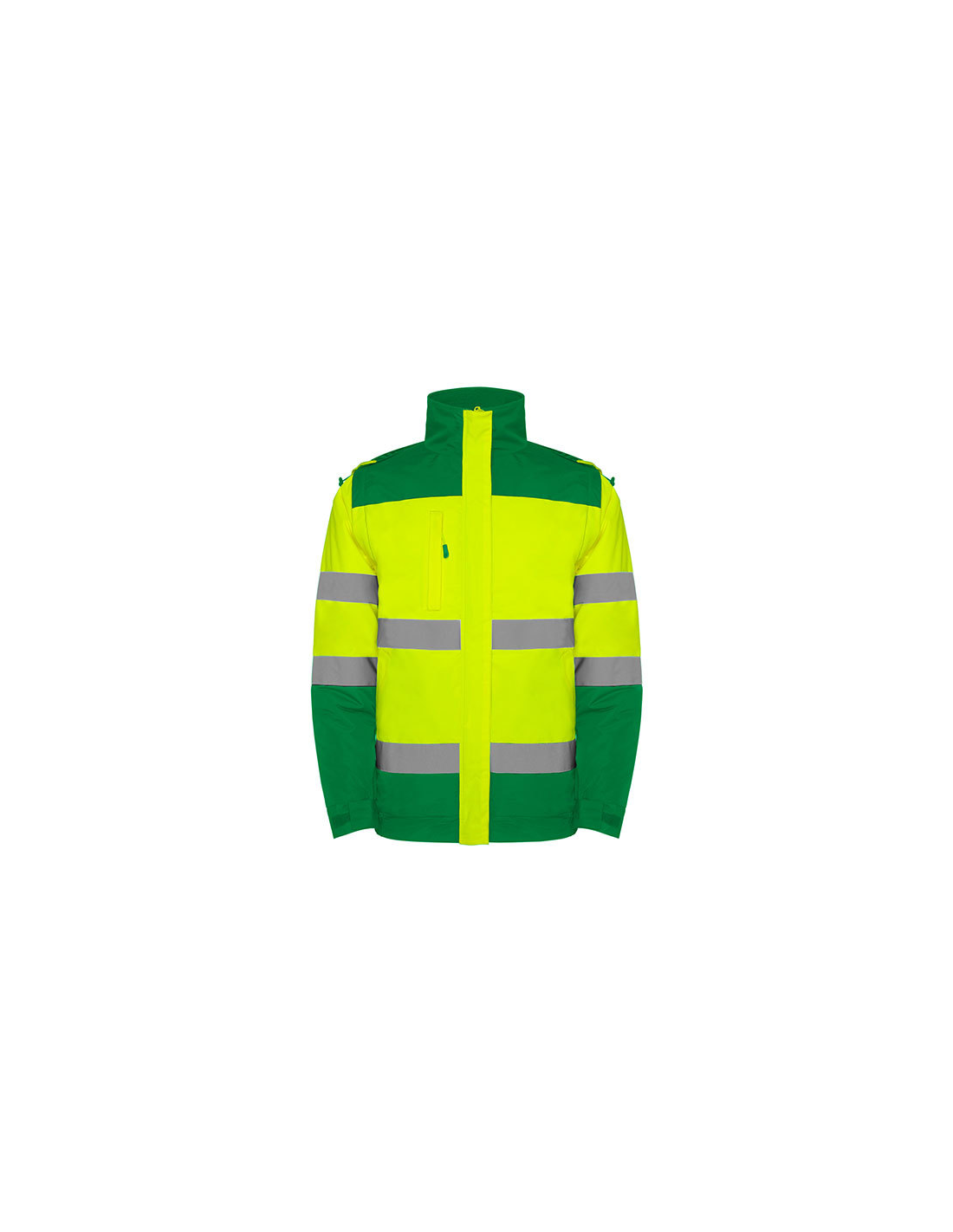 Kurtka odblaskowa, rozpinana przeznaczona głównie do pracy. Jest wodoodporna i wiatroszczelna. Posiada odpinany kaptur i rękawy oraz 2 kieszenie na zamek.