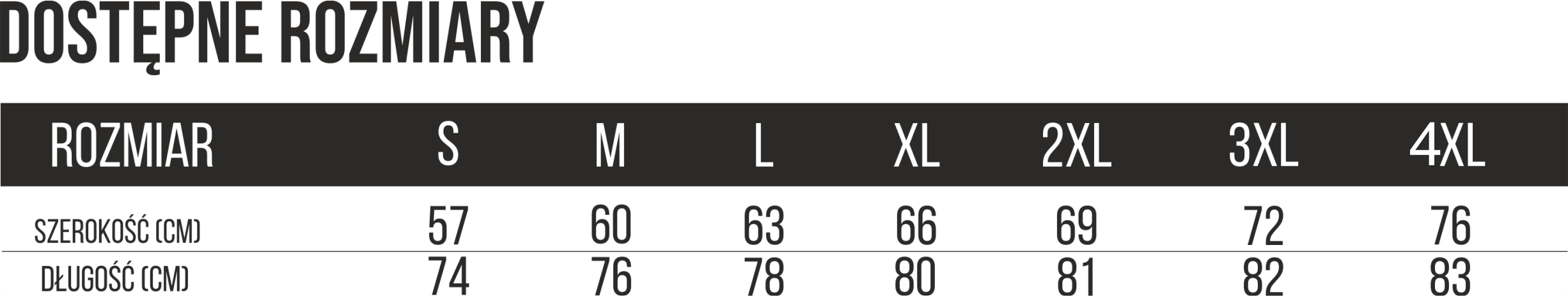 Rozmiary: S, M, L, XL, XXL, 3XL, 4XL