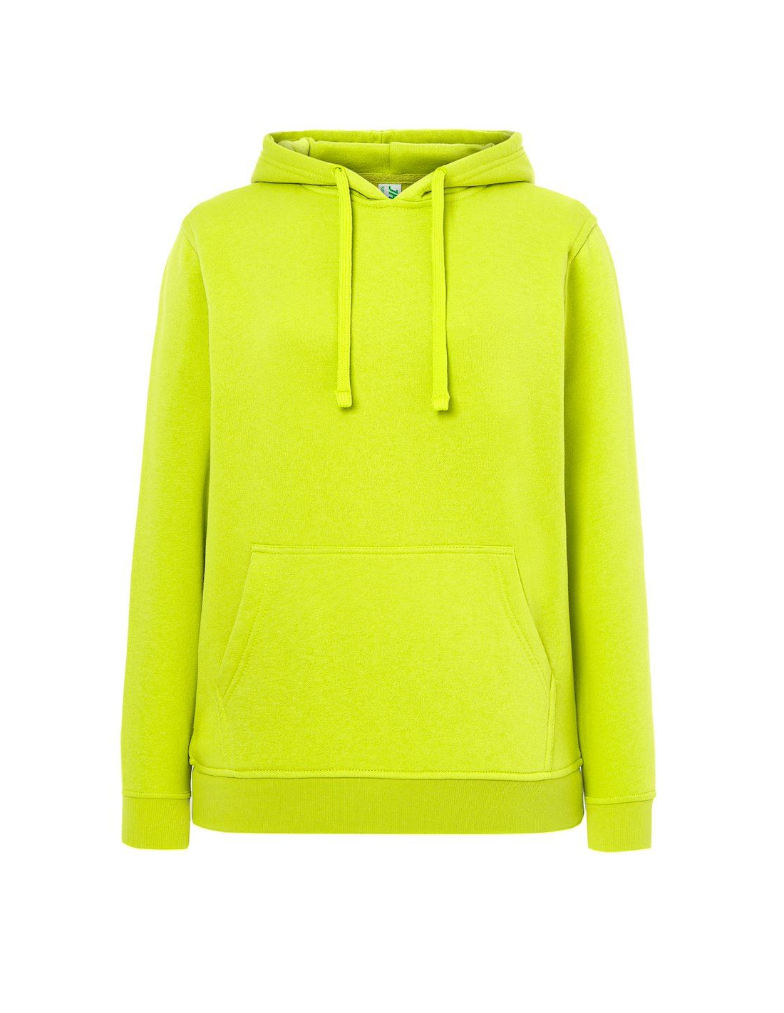 Bluza damska z kapturem i kieszenią typu kangur z regulowanymi sznurkami w dopasowanym kolorze. Dostępna w 19 kolorach oraz w rozmiarach od S do XXL. Dostępna również dla mężczyzn i dzieci. Ze względu na wyższą zawartość poliestru, niektórzy z naszych klientów używają białej bluzy do sublimacji.