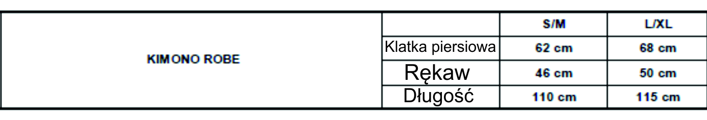Szlafrok posiada luźny, prosty krój, który gwarantuje swobodę ruchów oraz wygodę noszenia. Charakterystyczne dla stylu kimono rękawy oraz pasek w talii pozwalają na łatwe dopasowanie do sylwetki.
