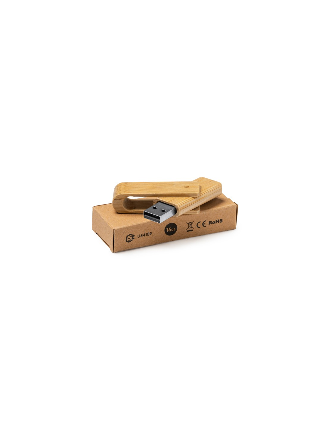 Pamięć USB z korpusem i obrotowym klipsem wykonanym z naturalnego bambusa. Zapakowany w pudełku zaprojektowanym z myślą o środowisku.