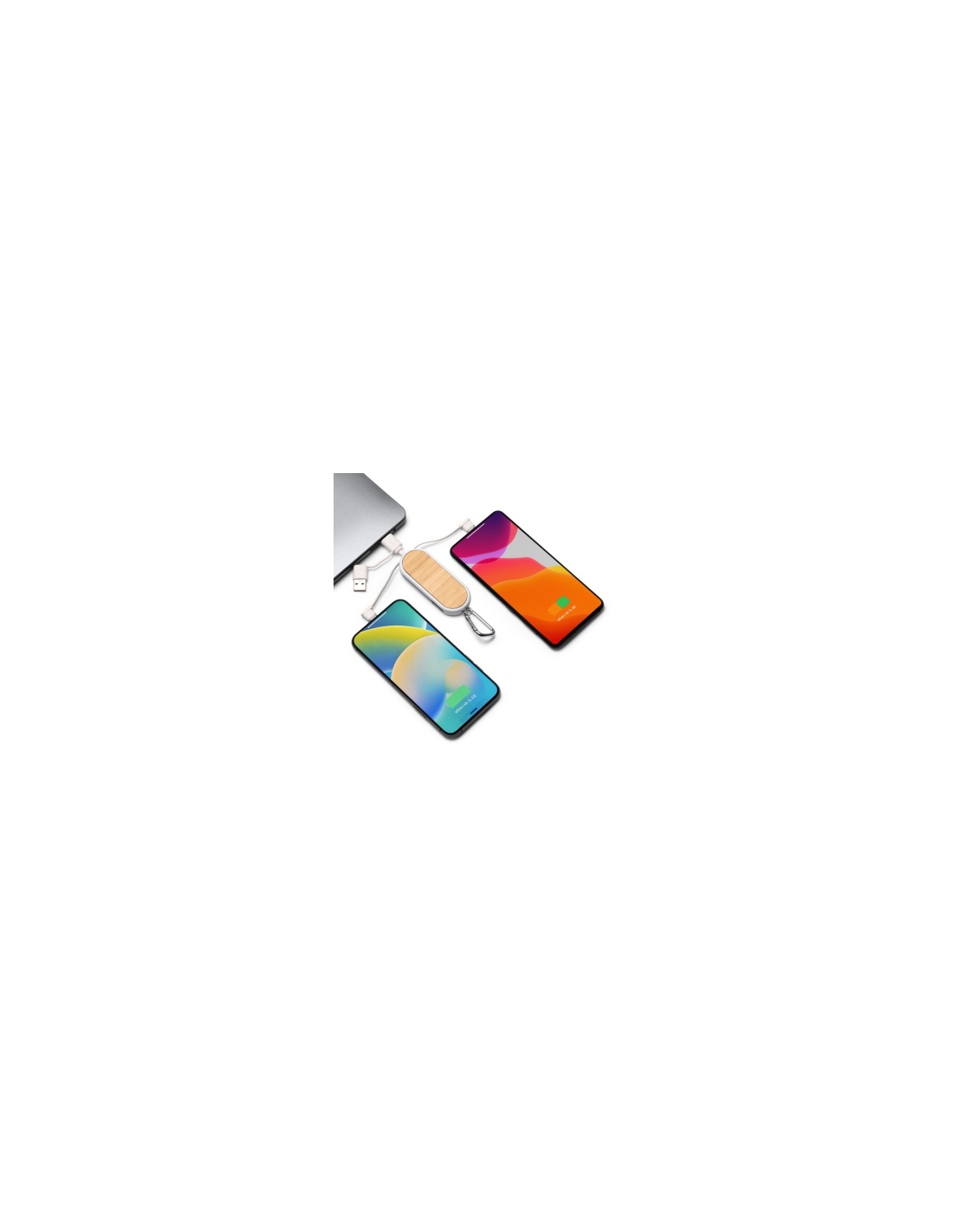 Kabel ładowarki 5 w 1 dostępny w zestawie to uniwersalne i wygodne rozwiązanie w zakresie ładowania urządzeń. Jej korpus wykonany jest z połączenia tworzywa ABS pochodzącego z recyklingu i bambusa, co nadaje jej naturalny i zrównoważony wygląd. Kabel ten ma wiele złączy, w tym wejście USB i USB typu C, a także wyjścia Micro USB, USB typu C i Lightning. Dzięki tej różnorodności złączy możesz ładować urządzenia z różnymi portami ładowania, takie jak smartfony, tablety, słuchawki i inne urządzenia elektroniczne. Dzięki kablowi ładowarki 5 w 1 możesz uprościć swoje potrzeby związane z ładowaniem, posiadając wiele złączy na jednym kablu. Co więcej, jego konstrukcja wykonana z naturalnych materiałów, takich jak bambus i tworzywo ABS pochodzące z recyklingu, pokazuje Twoje zaangażowanie w bardziej ekologiczny styl życia.