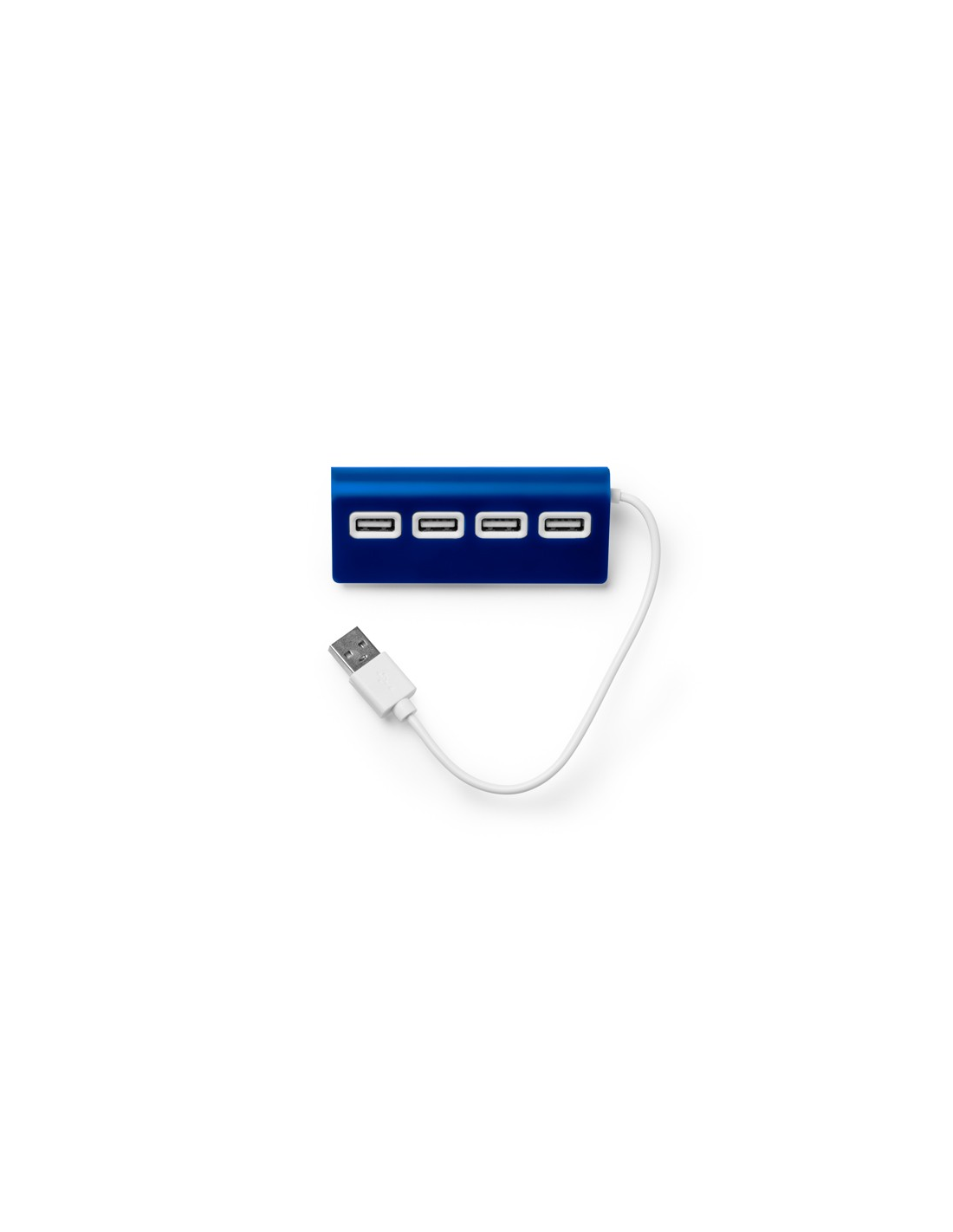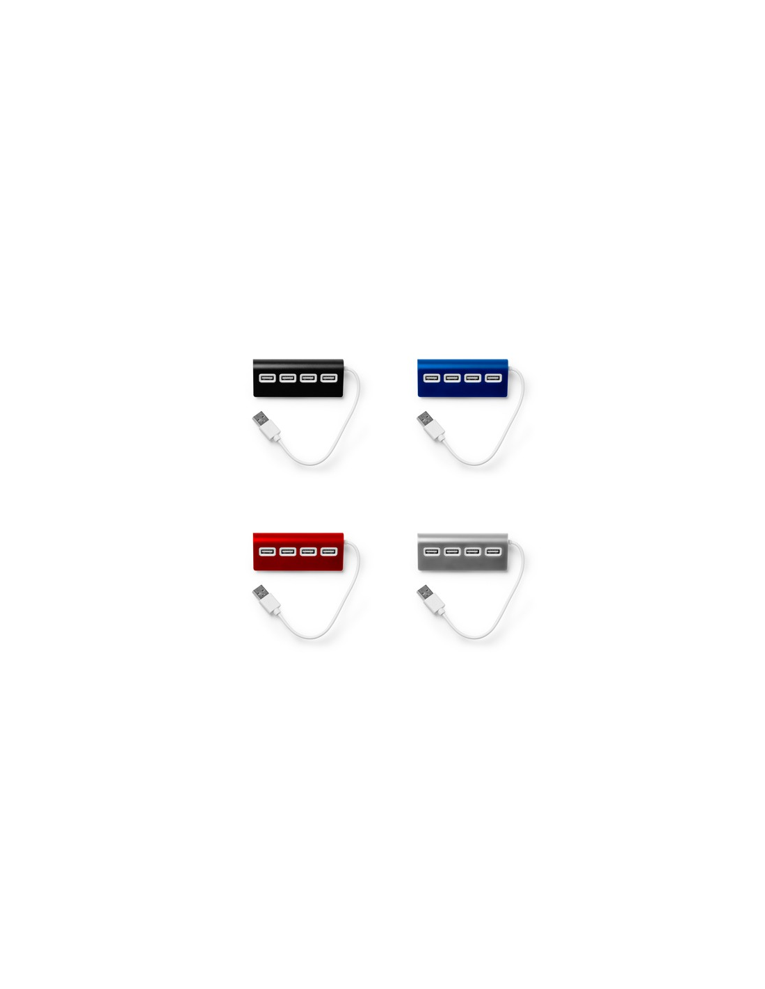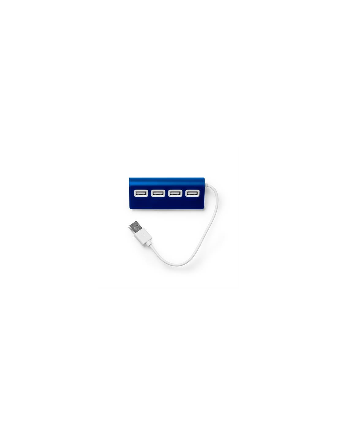 Port USB z aluminiowym korpusem, dwukolorowym wykończeniem i białym kablem. Zawiera 4 porty USB.