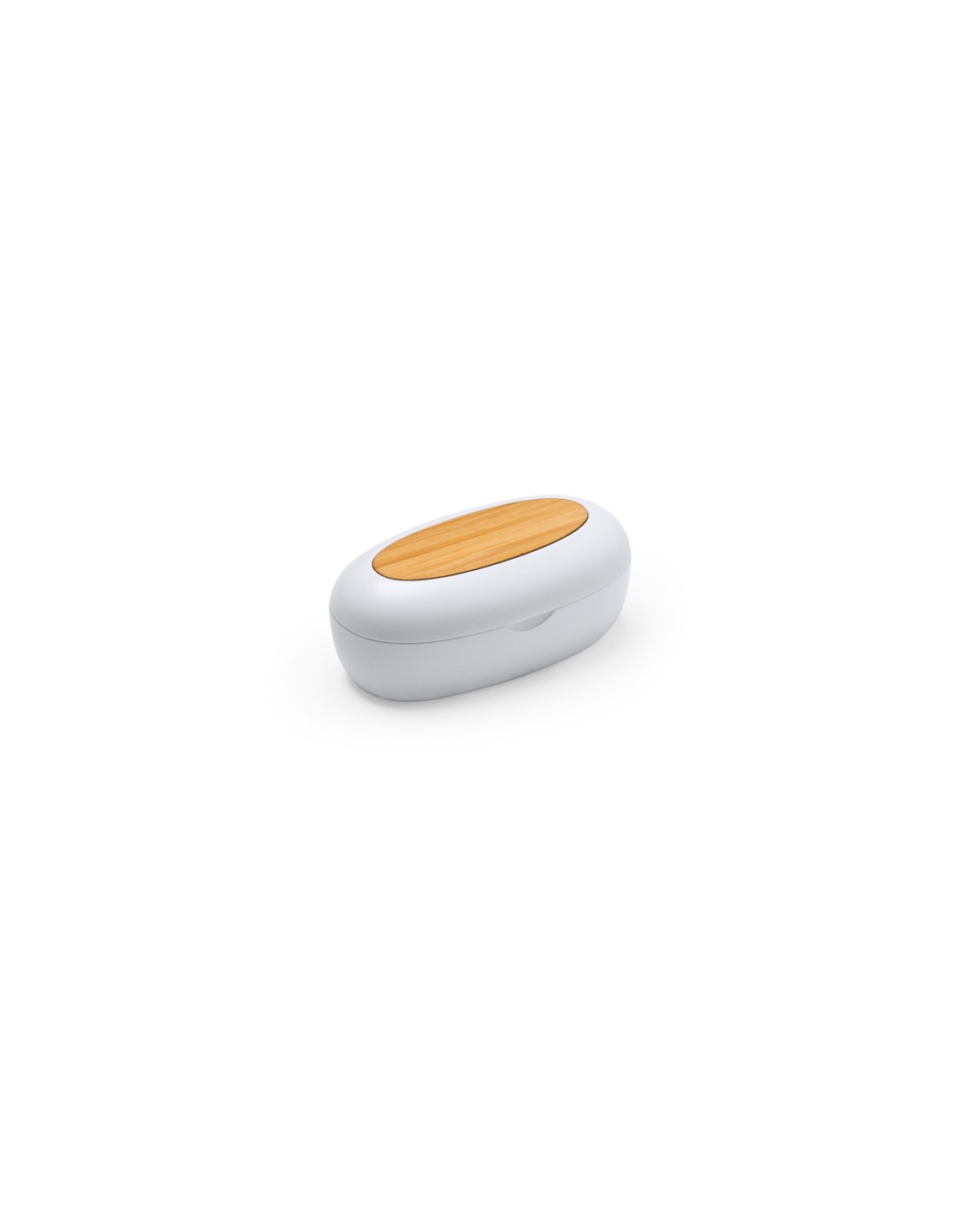Bezprzewodowe słuchawki Bluetooth 5.0 z etui do ładowania. Wykonane z przetworzonego tworzywa ABS i bambusowej powierzchni górnej. Panel sterowania z technologią dotykową wbudowany w słuchawkę. Funkcja zestawu głośnomówiącego. Etui z akumulatorem i magnetyczną osłoną. Dołączony kabel Micro USB.