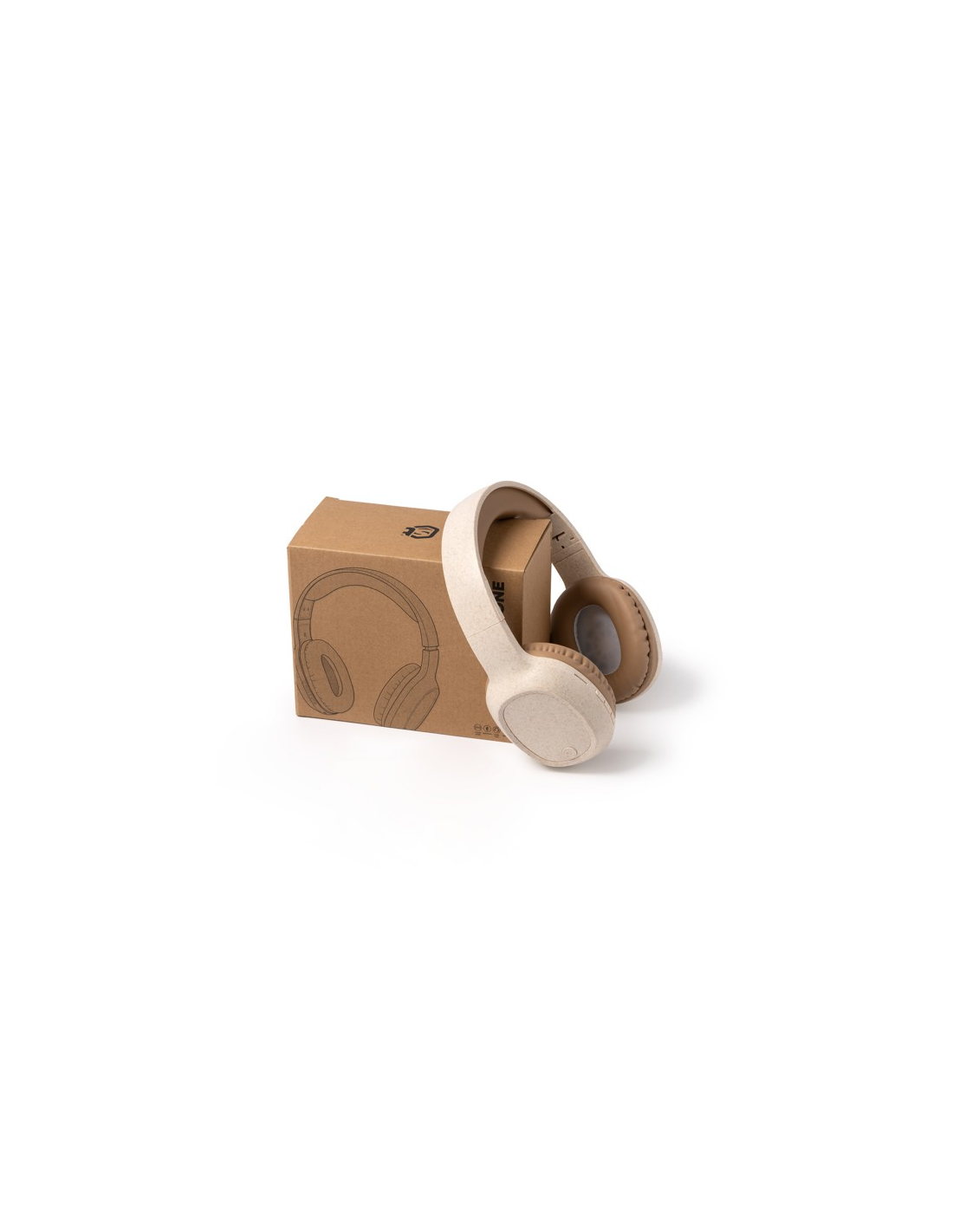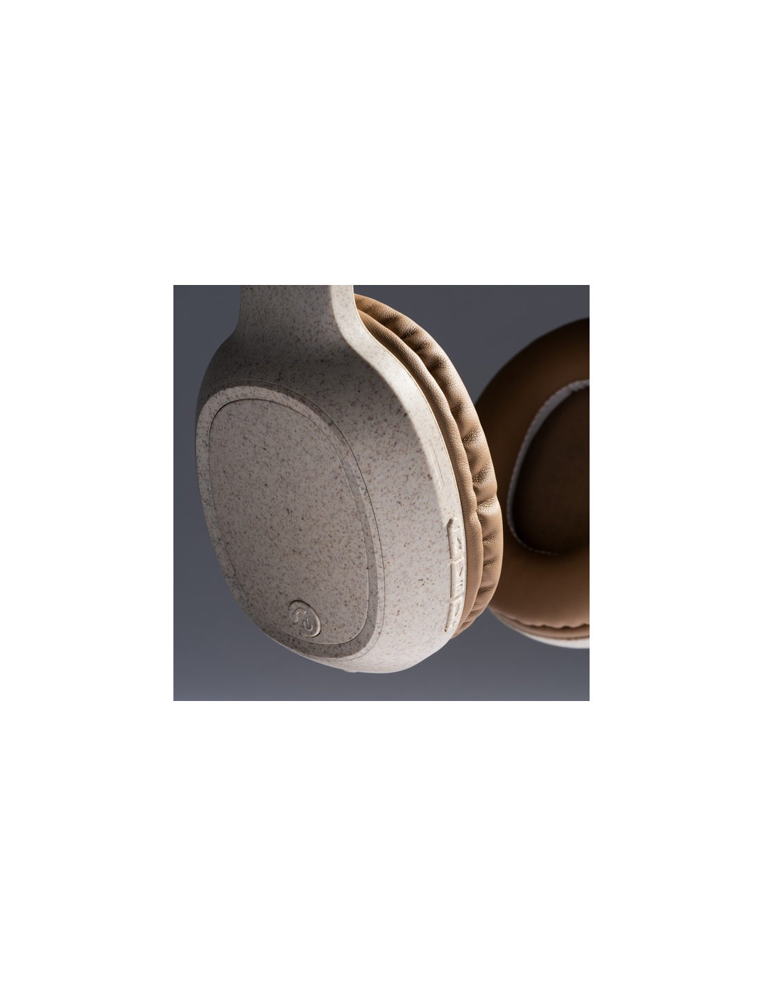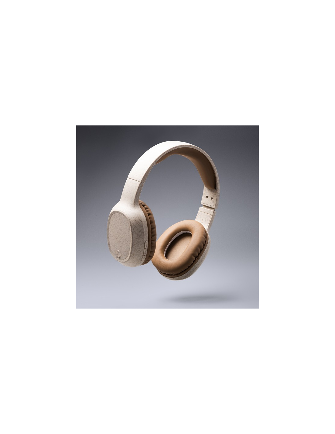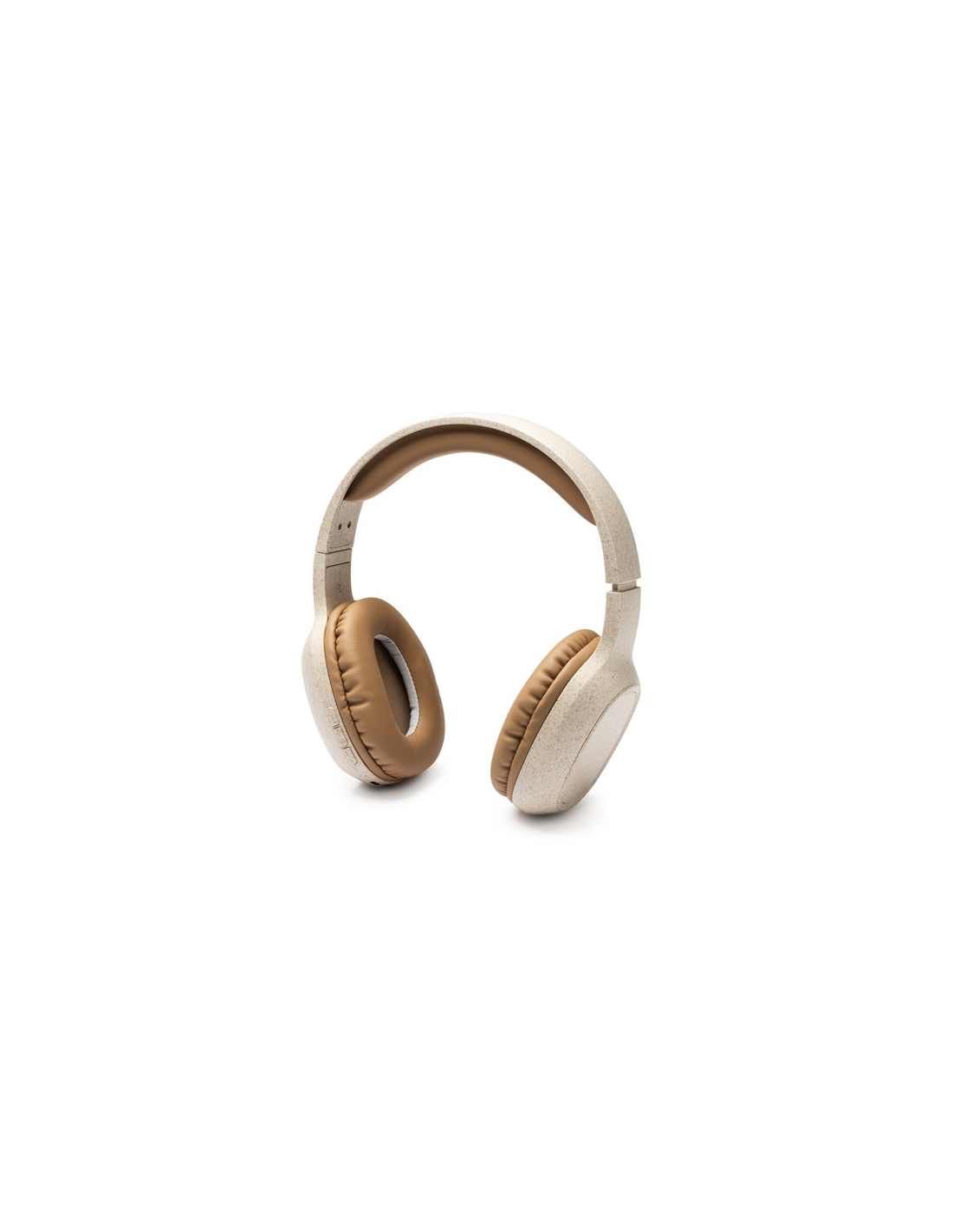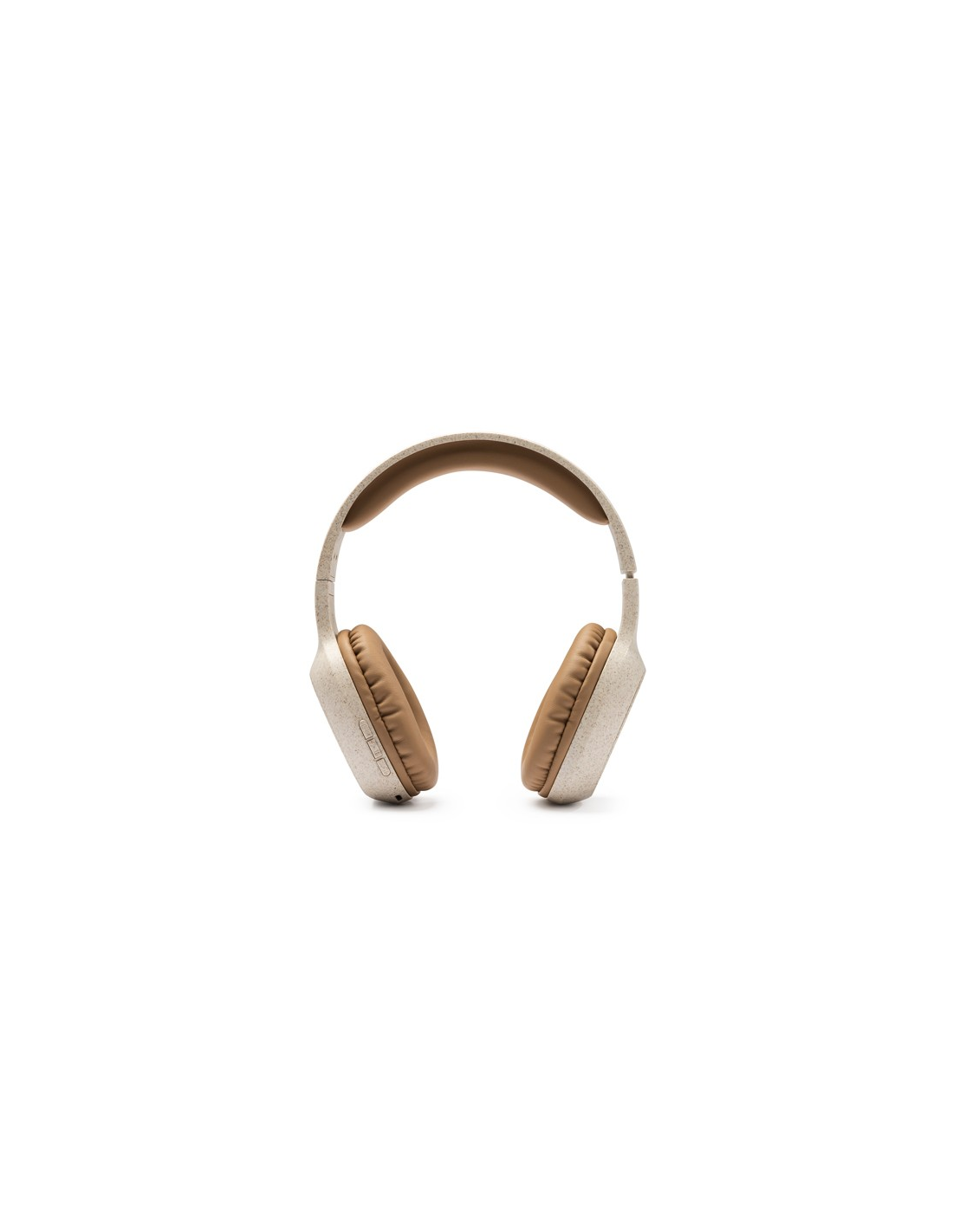 Bezprzewodowe słuchawki wykonane z włókna pszenicy. Górna wyściółka i nakładki na słuchawki wykonane ze sztucznej skóry. Wbudowany panel sterowania wykonany w technologii stereo. Funkcja głośnomówiąca i radio FM. Akumulator. Kabel w zestawie.
