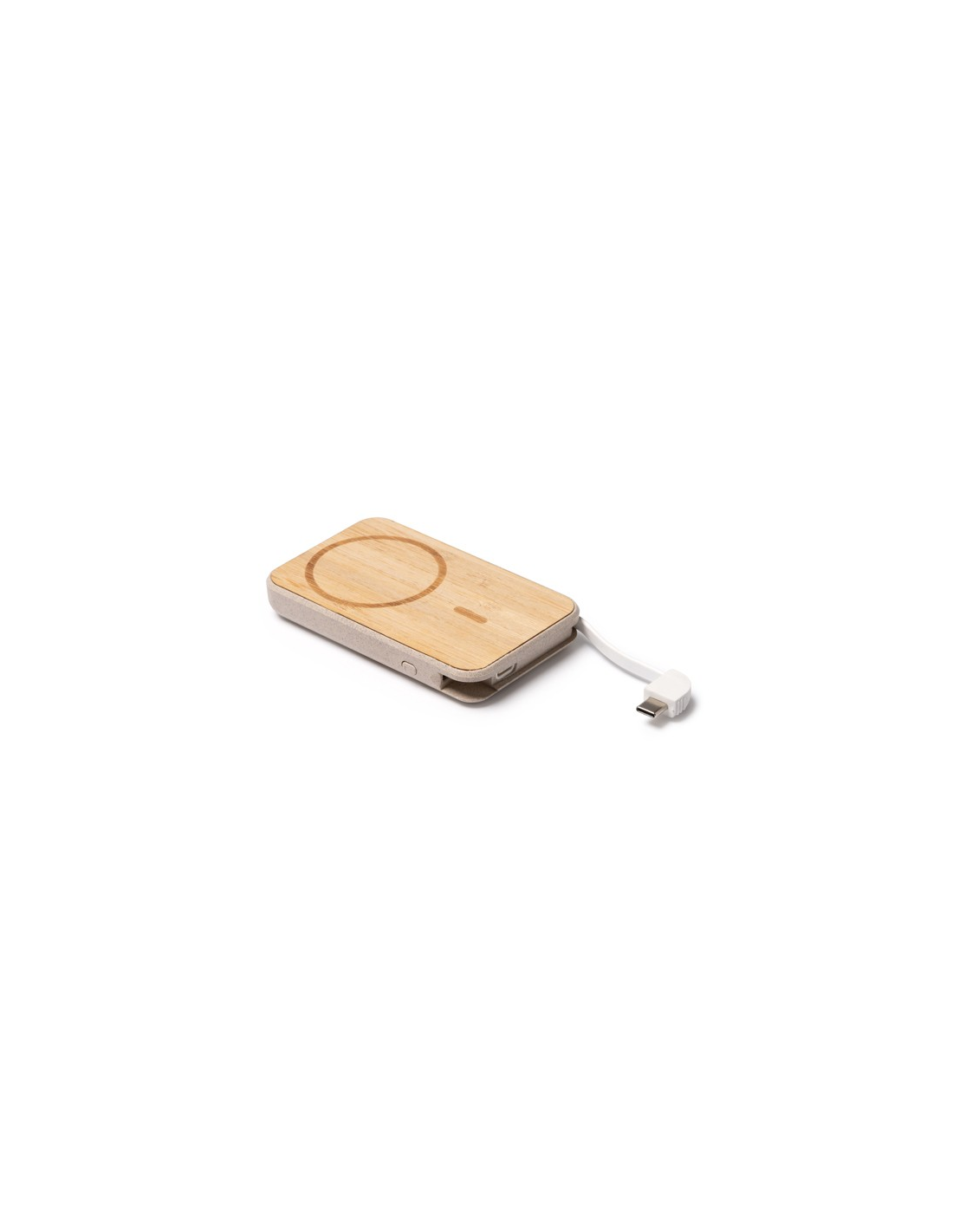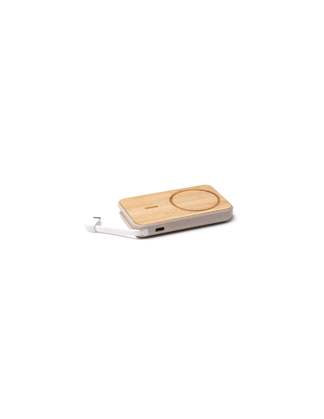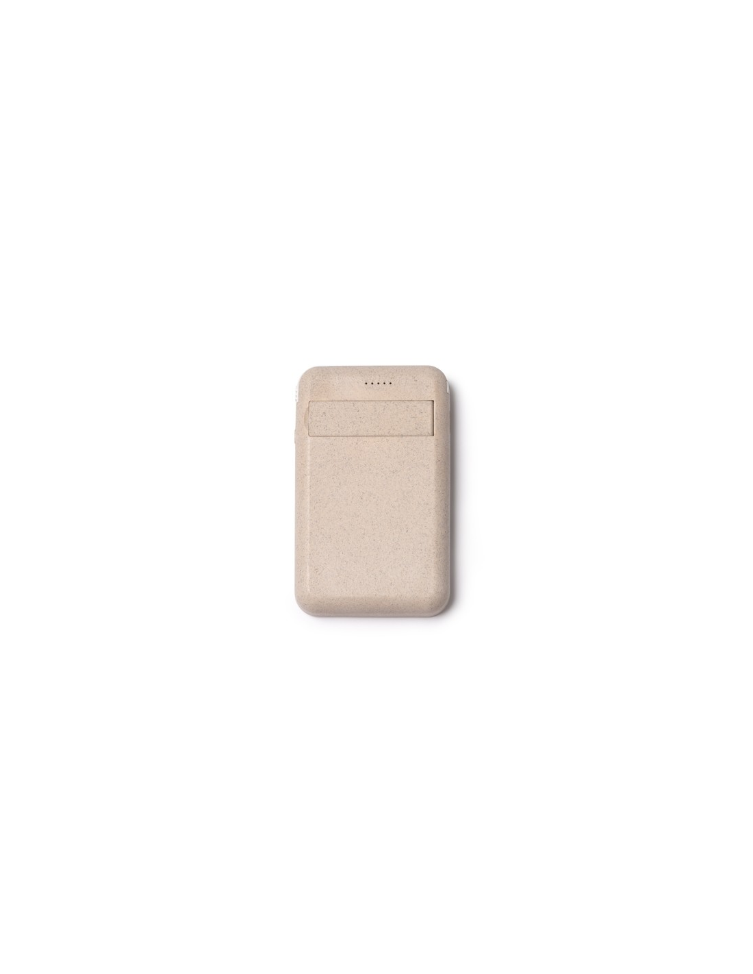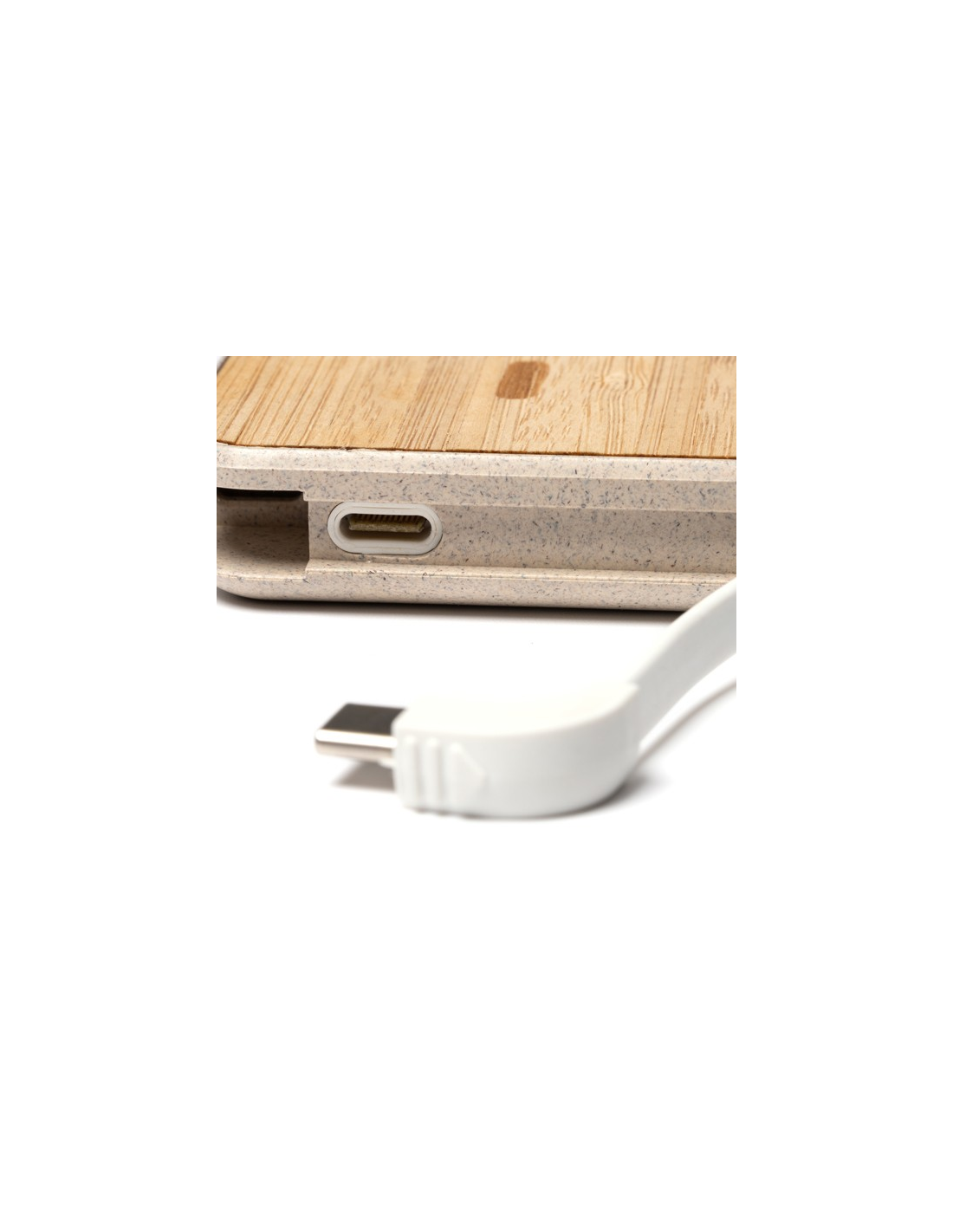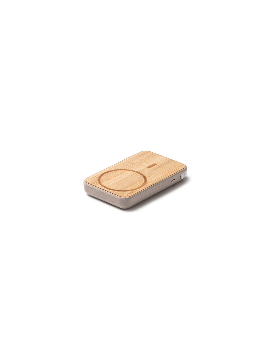 Zewnętrzny akumulator o pojemności 5000 mAh z korpusem wykonanym z bambusa i włókna pszennego oraz bezprzewodową ładowarką z funkcją mocowania magnetycznego to kompaktowa i ekologiczna opcja umożliwiająca ładowanie urządzeń w podróży. Dzięki pojemności 5000 mAh zapewnia niezawodne ładowanie smartfona lub innych urządzeń.