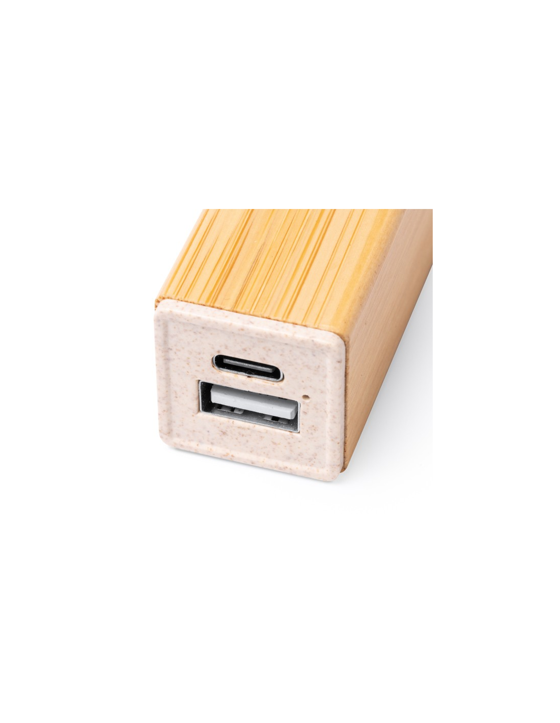 Power bank z główną konstrukcją wykonaną z włókna pszennego i bambusa. Pojemność: 2200 mAh. Wskaźnik ładowania LED. Wejście i wyjście USB typu C. Zapakowany w eleganckim pudełku.