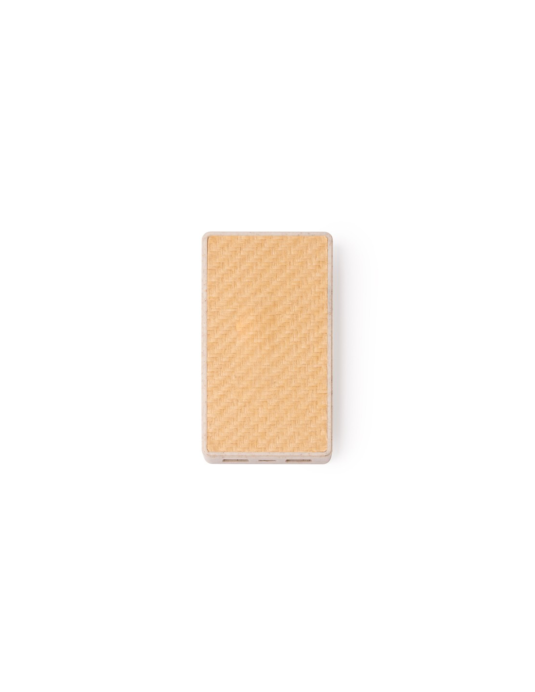 Zewnętrzna bateria wykonana z korpusu z włókna pszenicznego i podstawy z włókna naturalnego. Pojemność 10000 mAh. Wejście typu C. Wyjście typu C i 2 USB. Zawiera kabel. Prezentowany w ekologicznym pudełku.