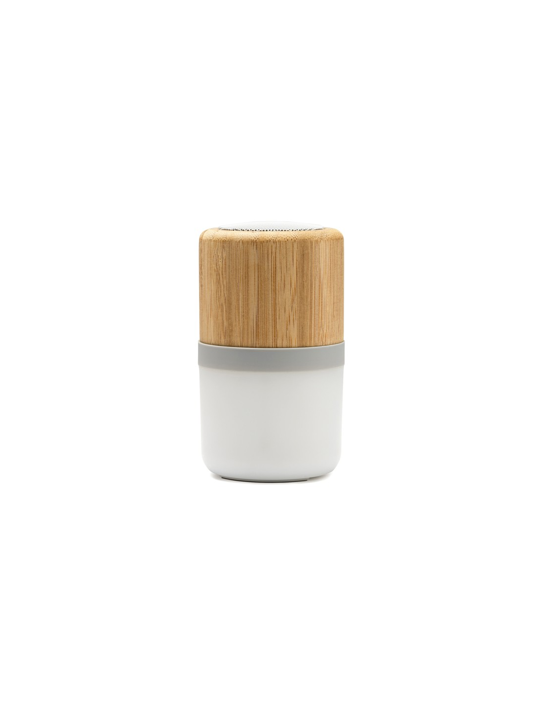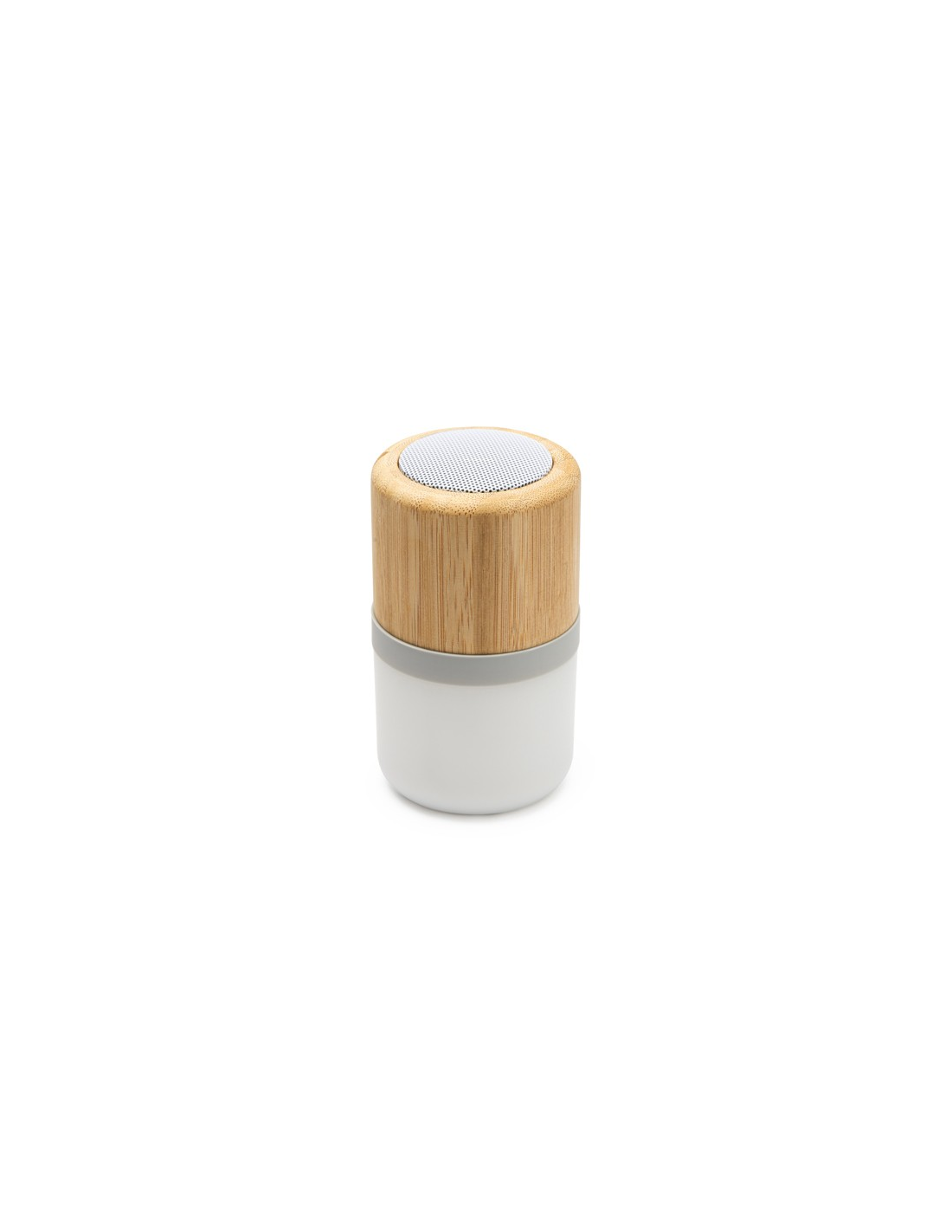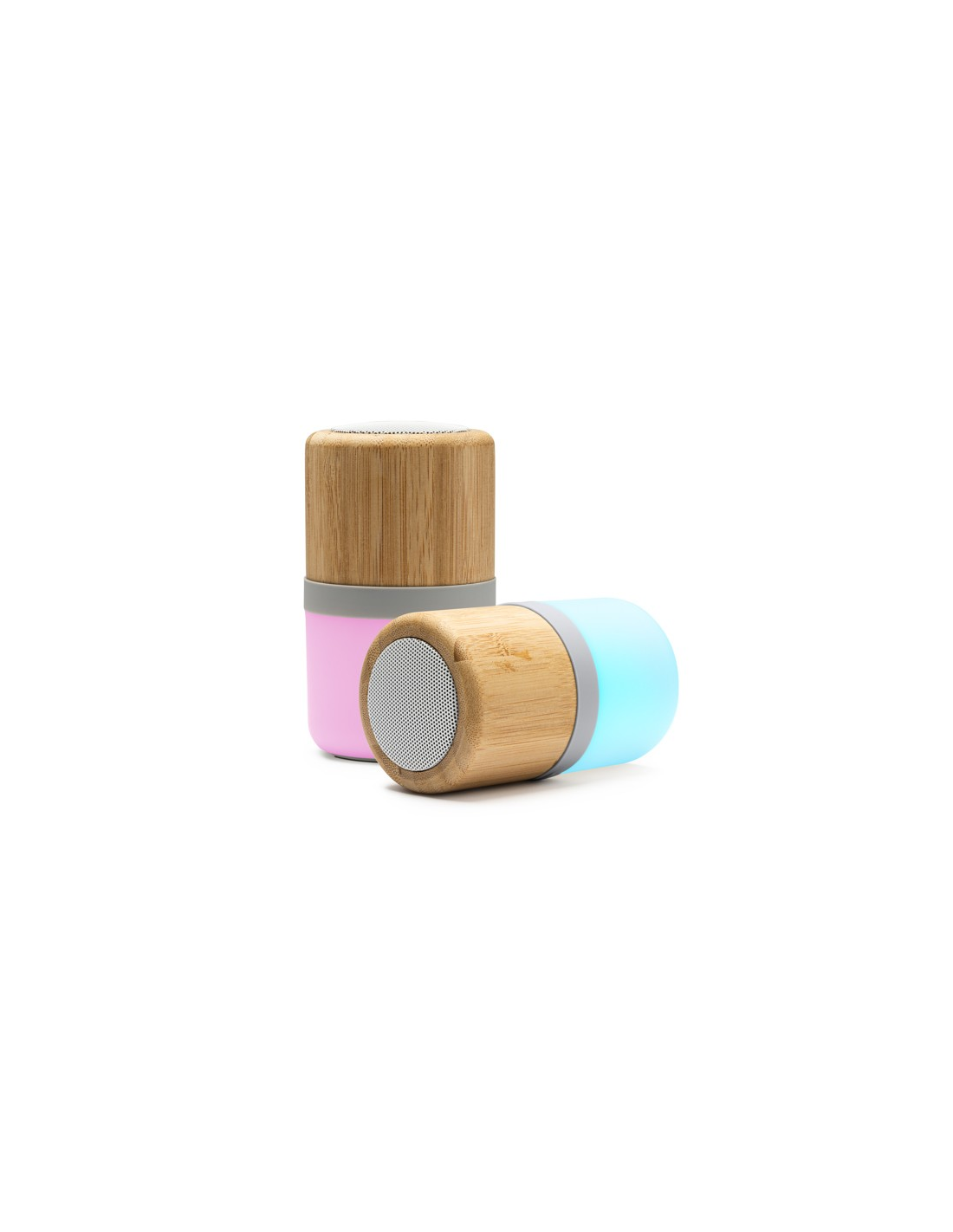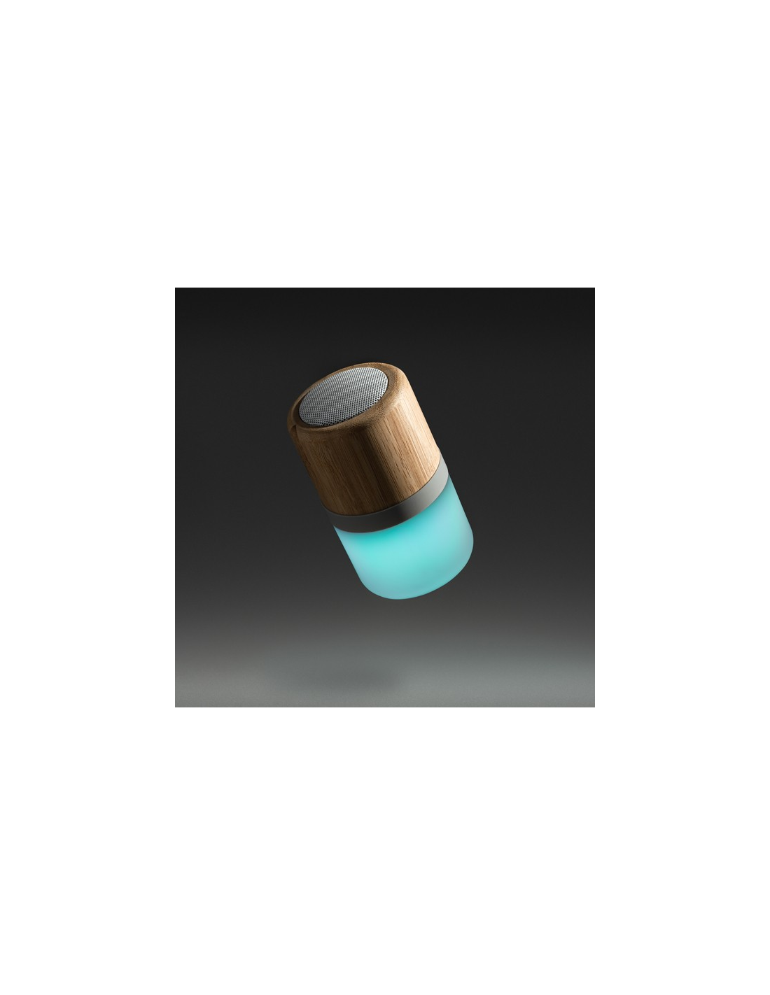 Bezprzewodowy głośnik z główną zabudową z bambusa. Wielokolorowe światło LED z 4 trybami oświetlenia. Moc 3W. Bateria do ładowania i kabel w zestawie.