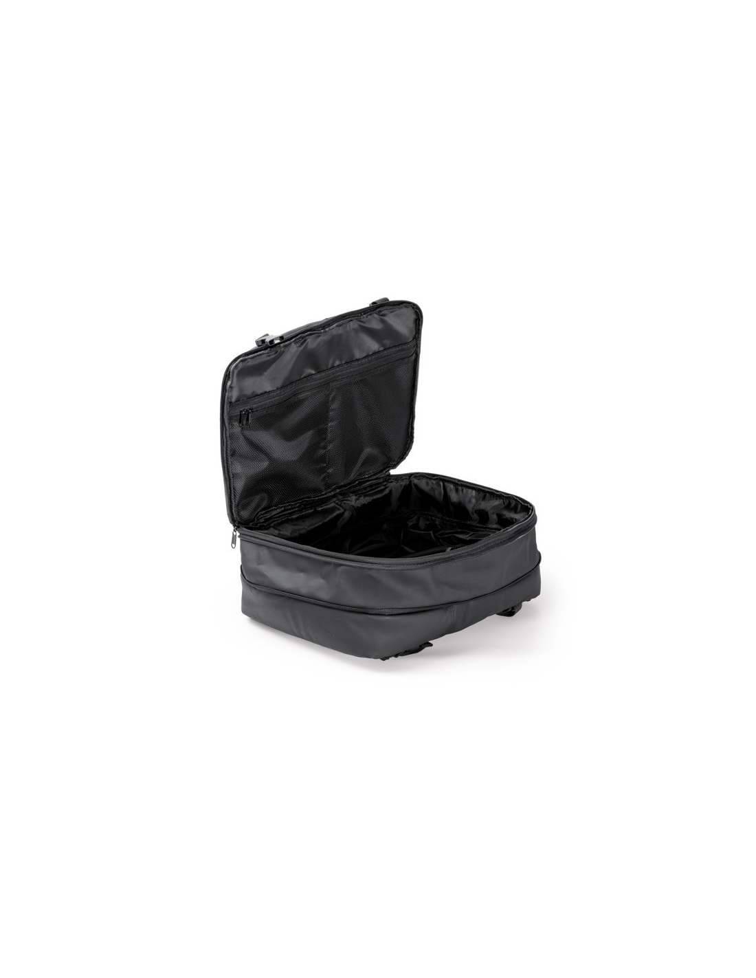 Wysuwany plecak wykonany ze skóry PU z kompresją próżniową dzięki elektrycznej pompie o mocy 30 W. Komora główna z dwiema niezależnymi kieszeniami wewnątrz — obie są zapinane na zamek błyskawiczny i wykonane z tkaniny siatkowej. Na zewnątrz znajduje się górna kieszeń z komorą na laptopa o przekątnej ekranu do 17 cali, a także ukryta kieszeń zapinana na zamek błyskawiczny. W zestawie znajdują się klamry regulacyjne po bokach i pasek do mocowania. Wyściełane plecy i szelki.