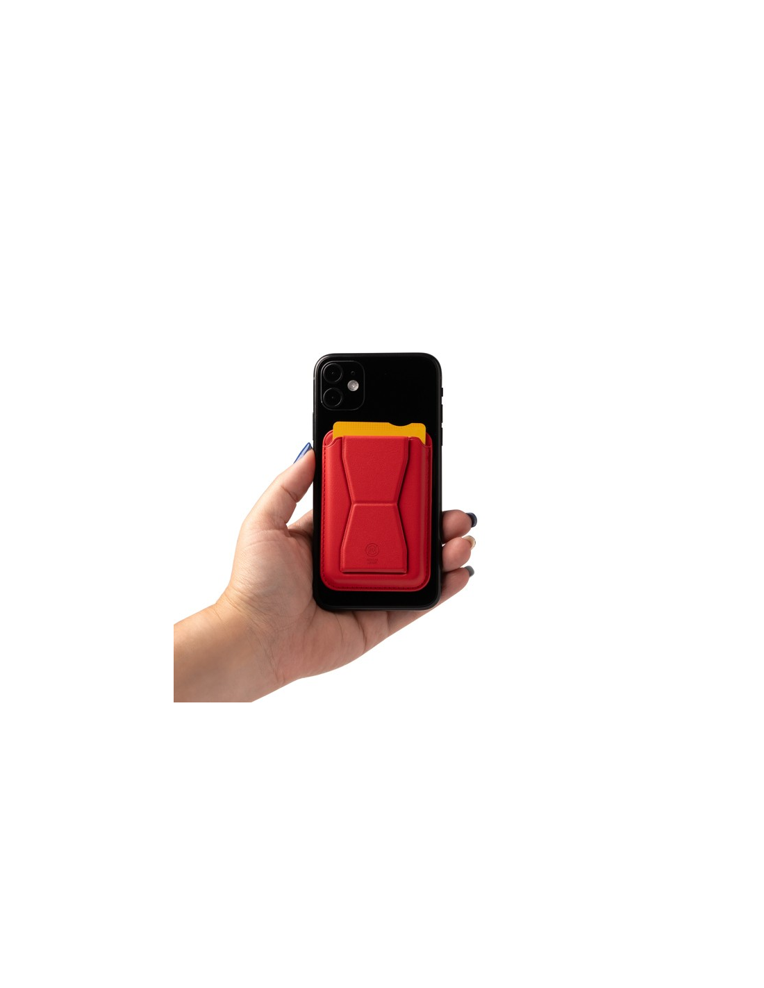 Uchwyt na karty ze składanym stojakiem wykonany z PU pochodzącego z recyklingu.