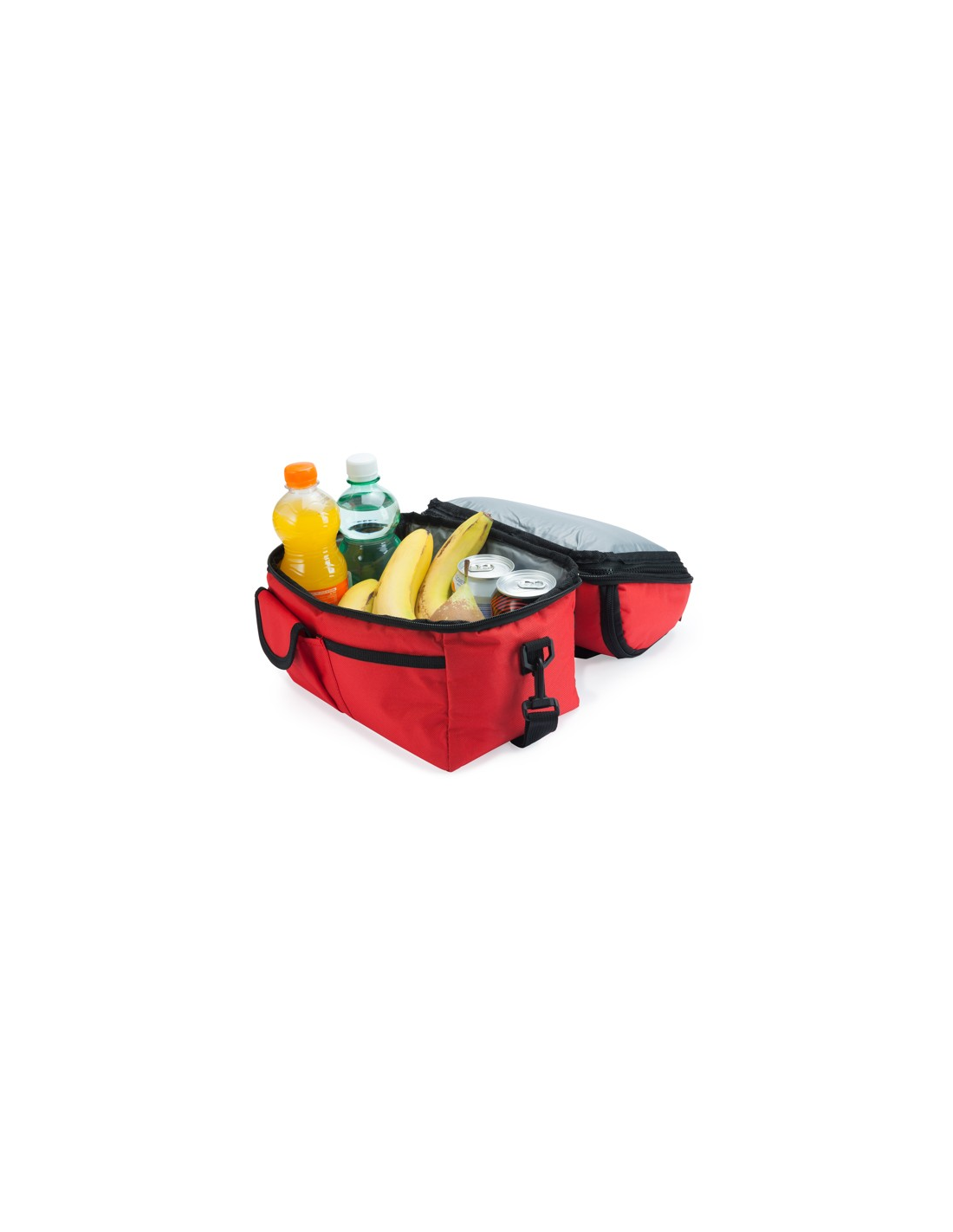 Wielofunkcyjna przenośna lodówka poliestrowa 600D. Izotermiczne przedziały wewnętrzne i praktyczne kieszenie zewnętrzne. Regulowany, miękki pasek na ramię z karabińczykiem.