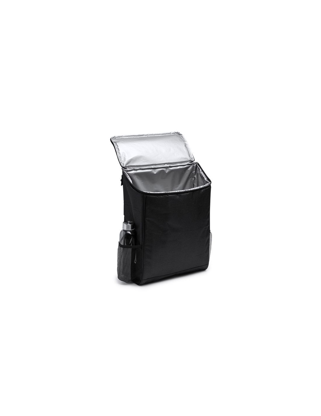 Plecak termoizolacyjny wykonany z tkaniny RPET. Izotermiczna podszewka w komorze głównej i kieszeń w klapie. Boczne kieszenie wykonane z siatki. Pojemność: 18 litrów. Wyściełane plecy i szelki.