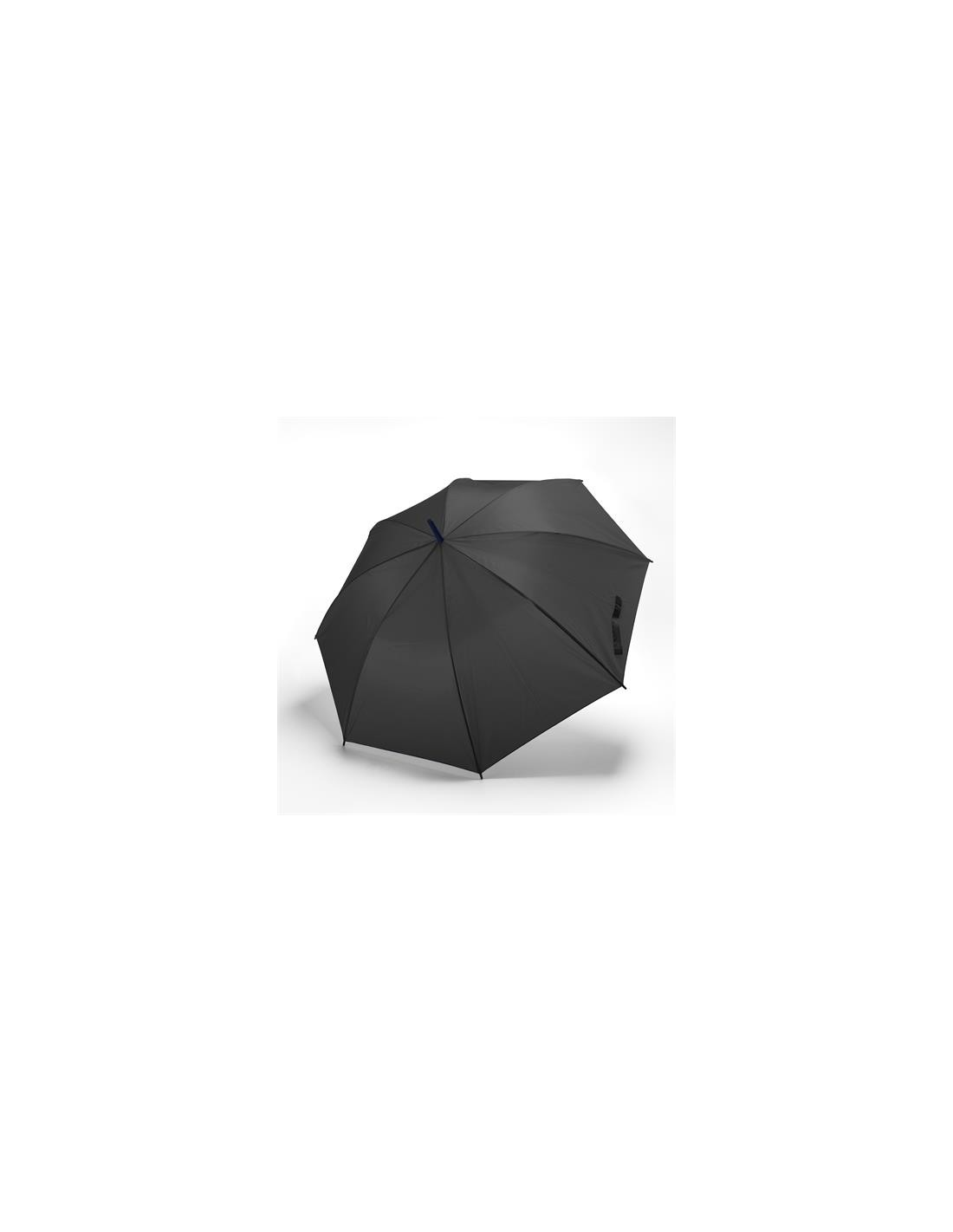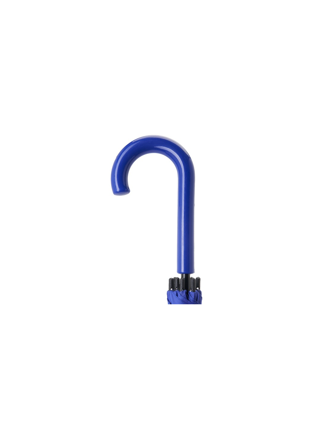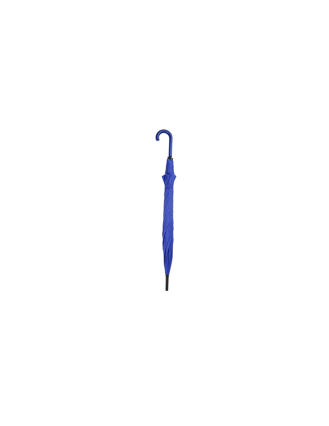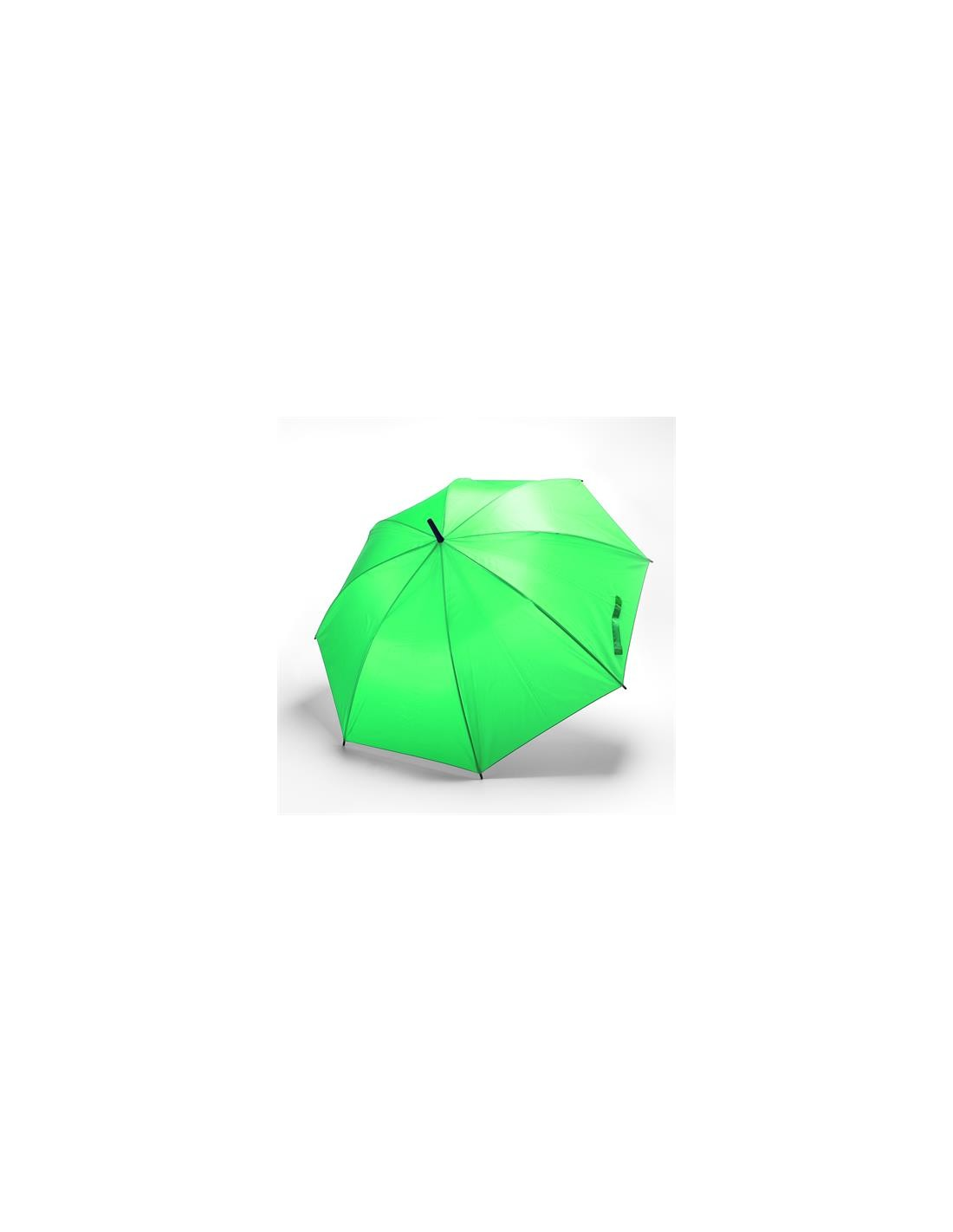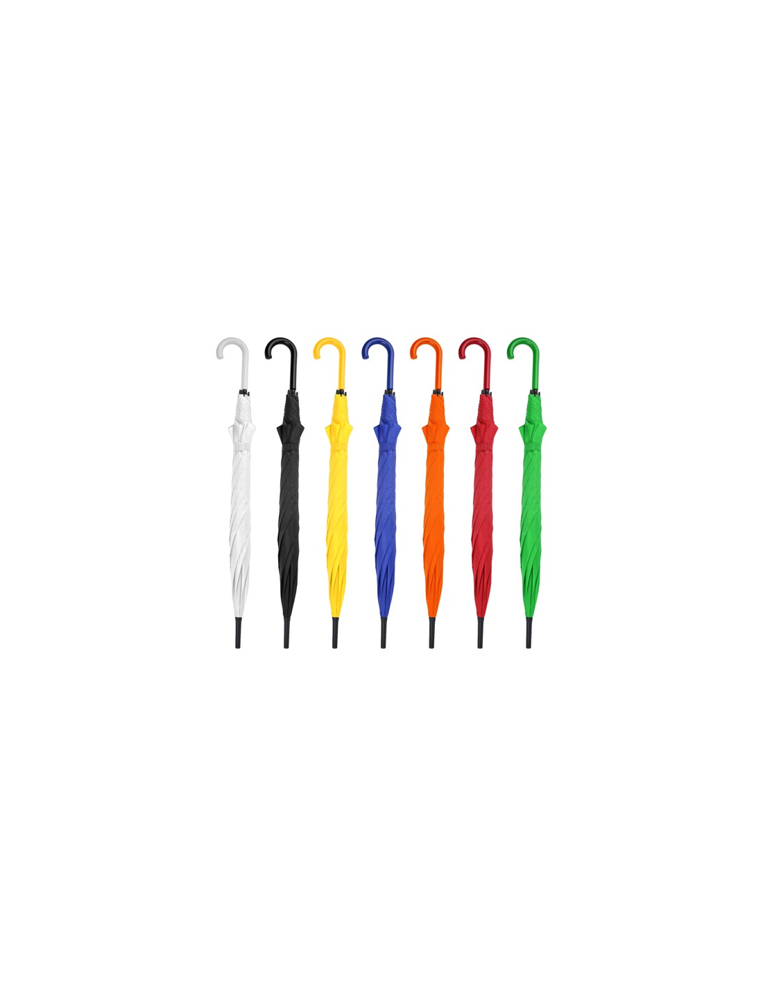 Parasol z tkaniną i rączką w tym samym kolorze. Czarne żebra i końcówki. Zapięcie na rzep i automatyczne otwieranie.