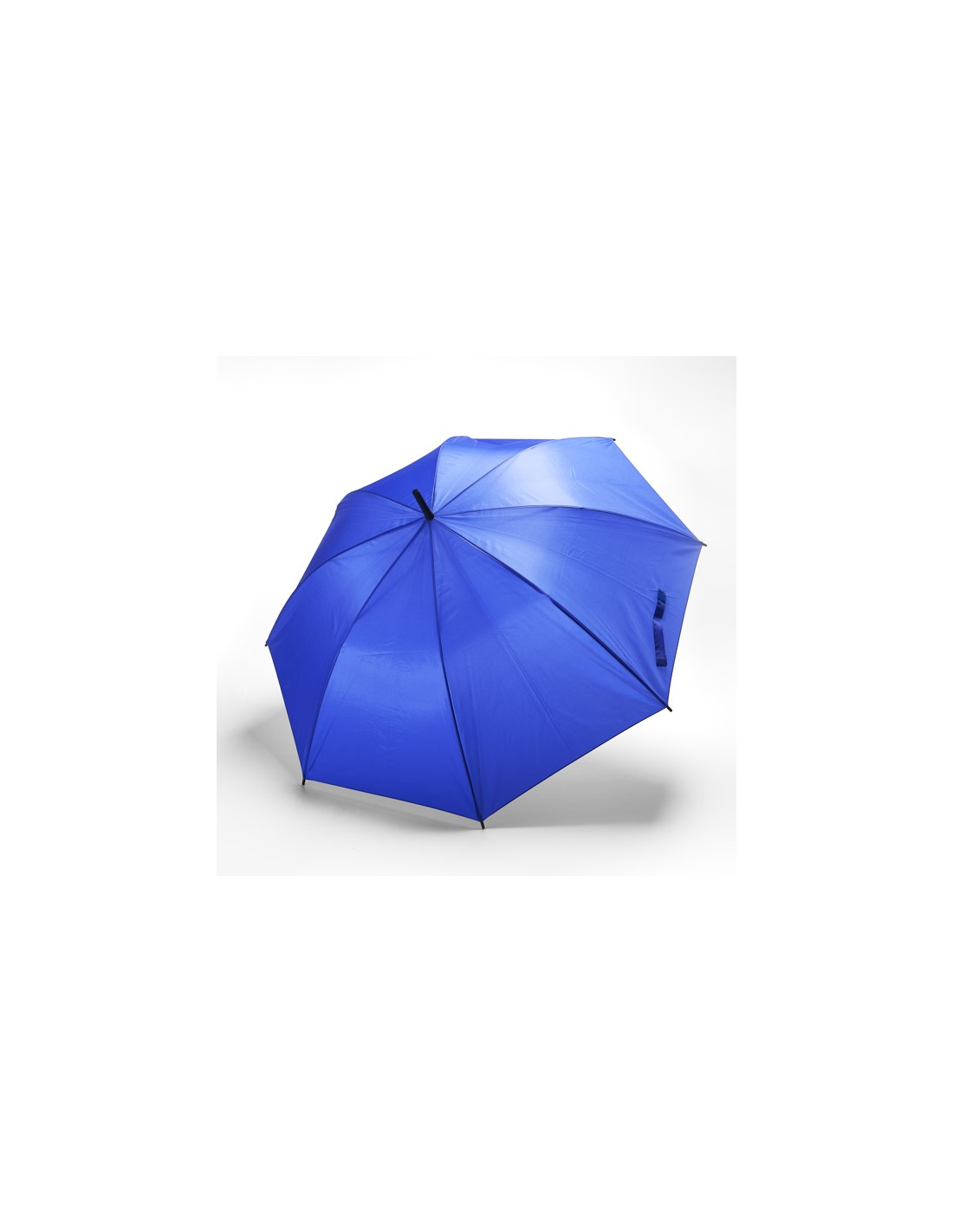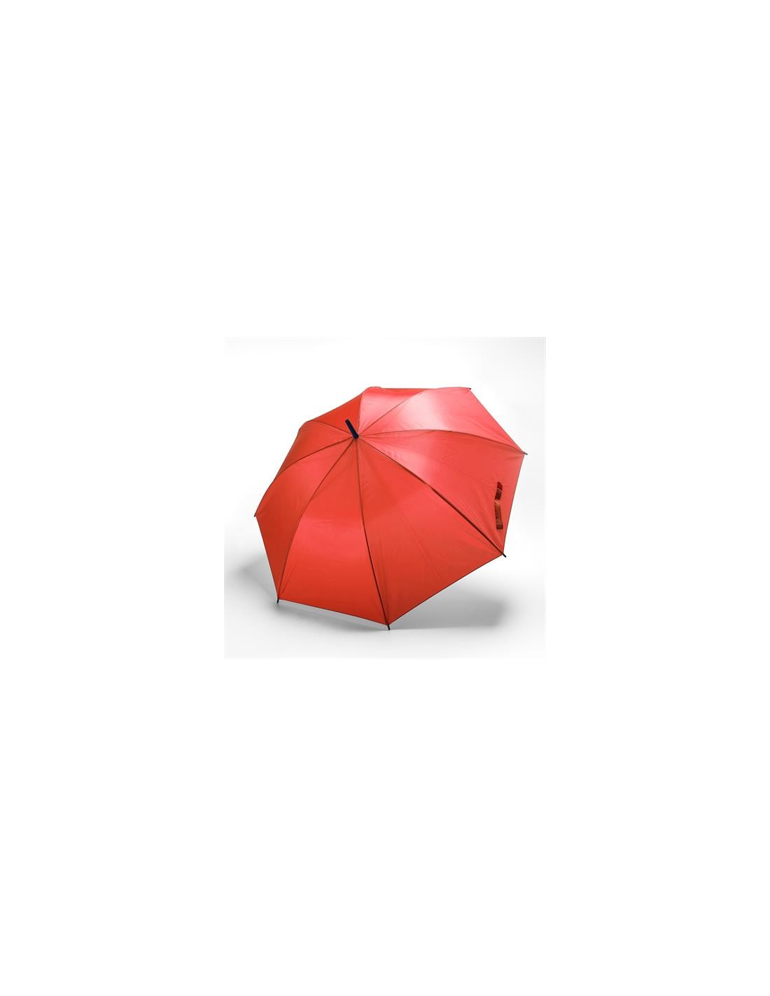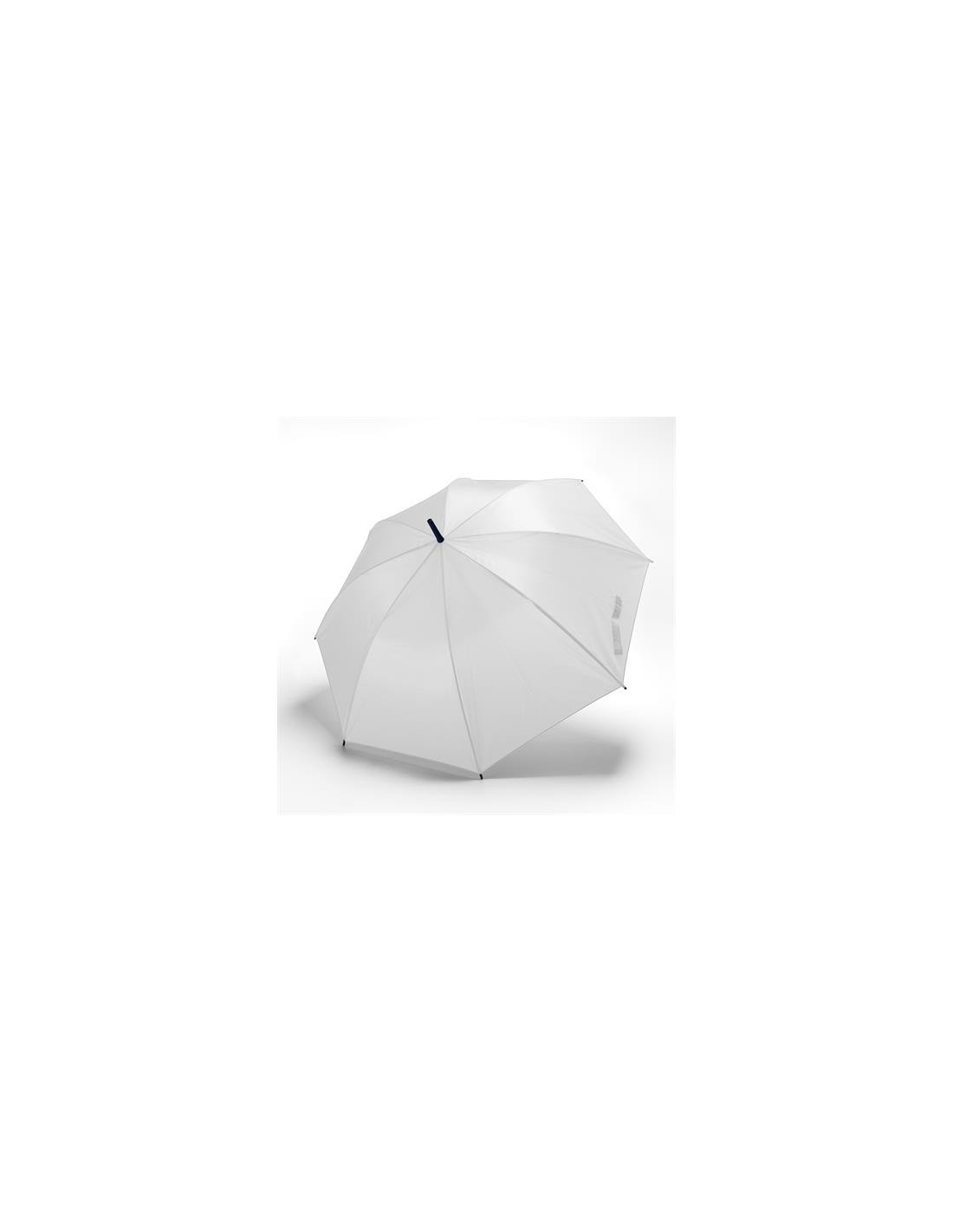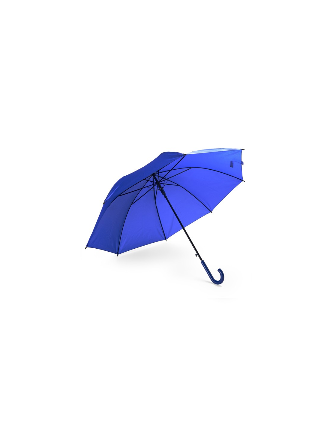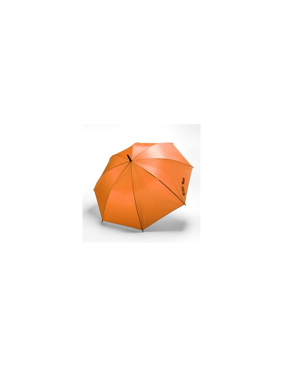 Parasol z tkaniną i rączką w tym samym kolorze. Czarne żebra i końcówki. Zapięcie na rzep i automatyczne otwieranie.