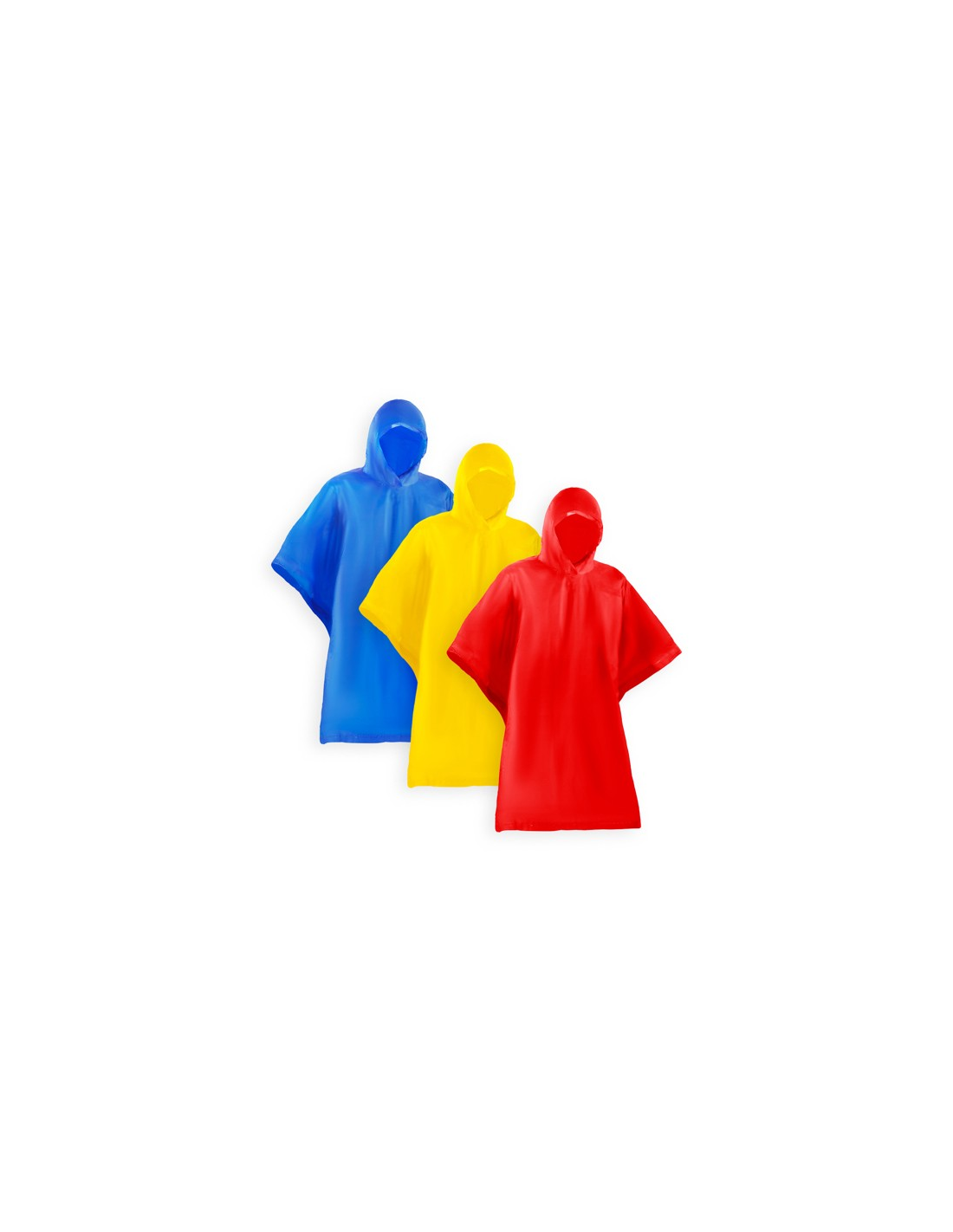 Wodoodporne, składane ponczo z otworami na kaptur i ramiona. Zgrzewane krawędzie i boczne zapięcie na zatrzaski. Jeden rozmiar (127 x 100 cm). PCV. Etui w zestawie.
